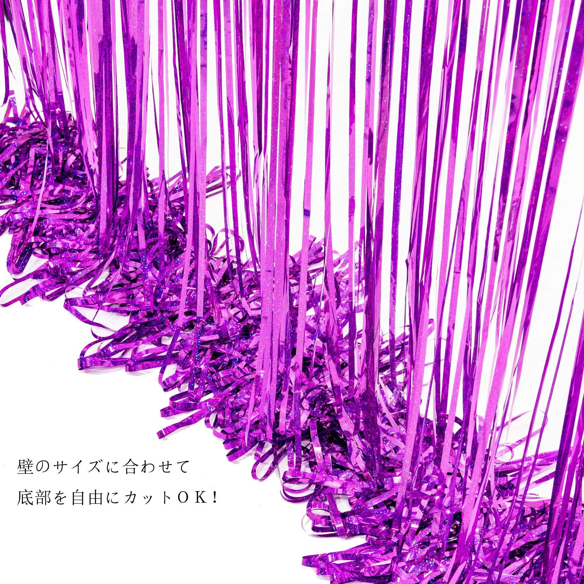 2個セット BRAVESHINE タッセルカーテン キラキラ 背景 明るい光沢 誕生日 飾り付け 100cm*250cm 誕生日 飾り カーテン birthday decorations パーティー デコレーション party decoration (パープル) | yankees