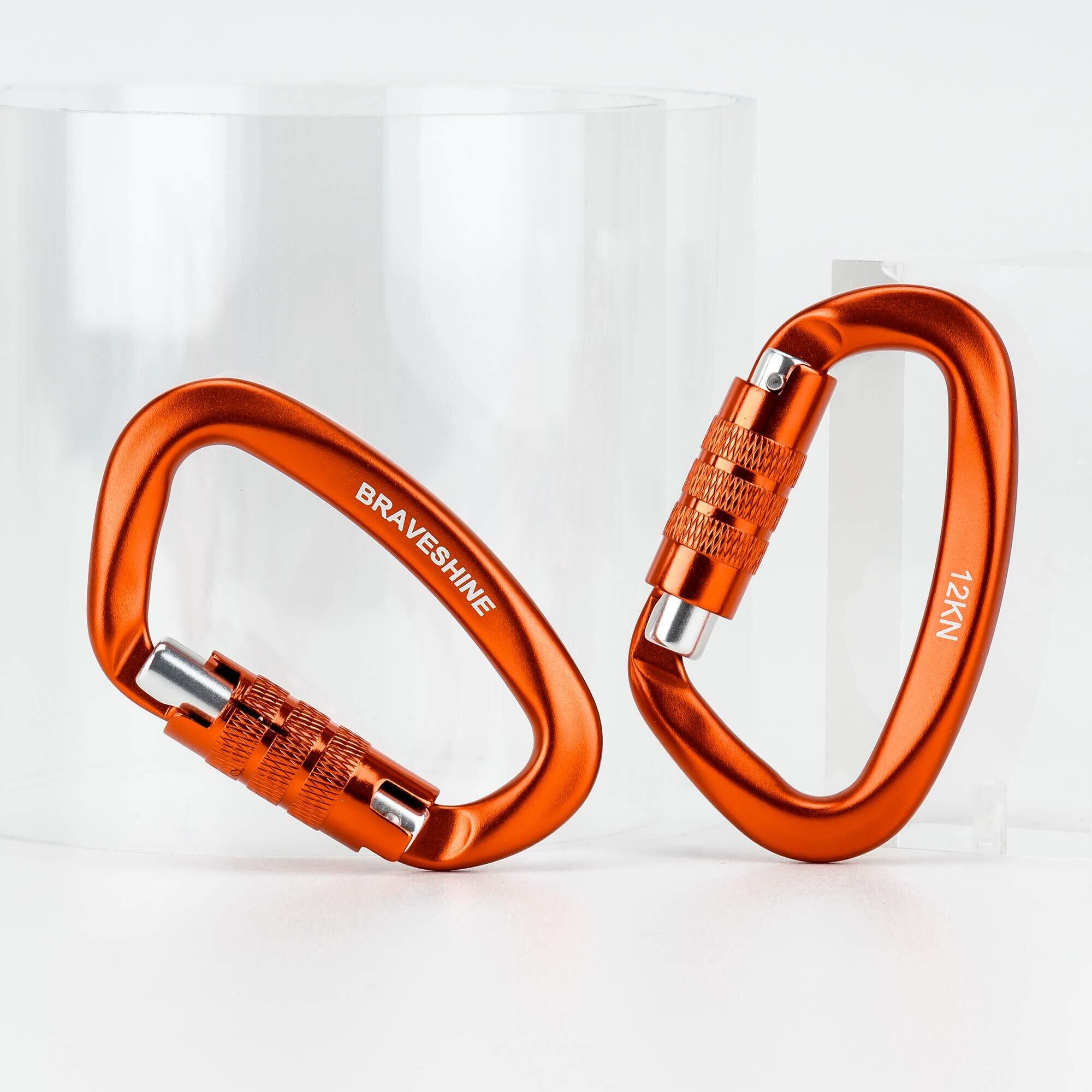 カラビナ 12KN オートロック式 BRAVESHINE 耐荷重1200kg ロックカラビナ Dリング 軽量 ハンモック タープ キャンプ用 荷物のフック 犬のリード用 多機能 2個セット