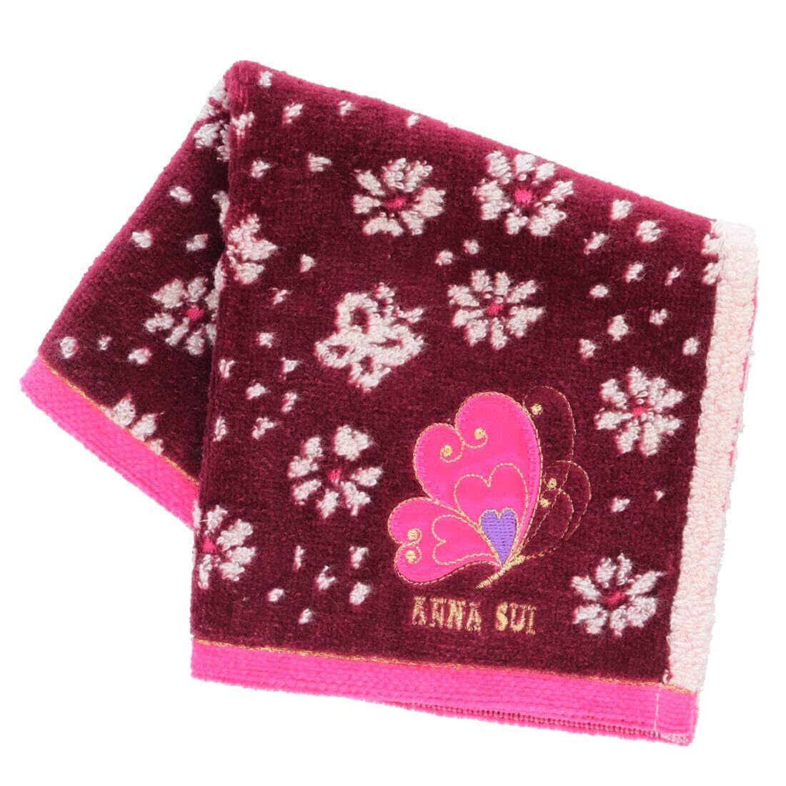 [ANNA SUI] アナスイ タオルハンカチ バタフライ アップリケ刺繍 (ピンク) 婦人 レディース タオル ハンドタオル 約25cm 109482-0010-01