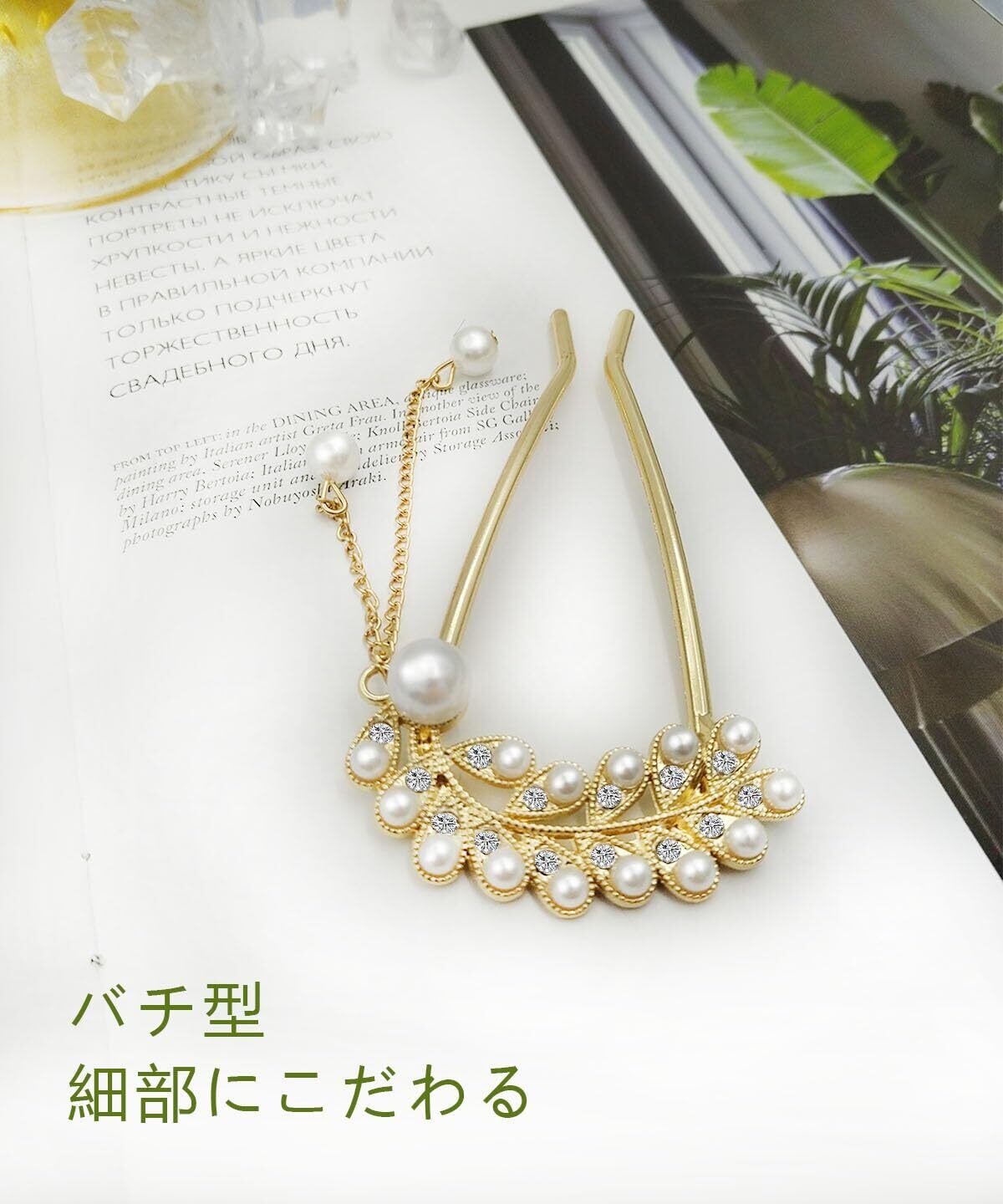 かんざし 髪飾り 留袖 二本挿し バチ型 二本挿し 簪 和装 Uピン パール 結婚式 振袖 まとめ髪 レディース