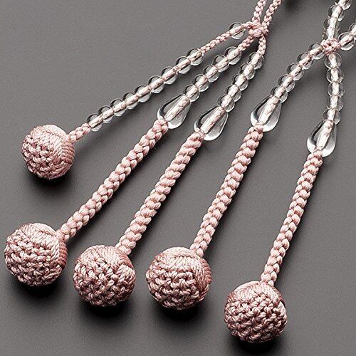 サイズ:8寸サイズ/珠の素材:本水晶主珠108個/主珠…本水晶5mm玉/親珠…本水晶12mm玉/天珠…本水晶4mm玉/房の素材:正絹華梵天房(ピンク色)/備考:桐箱入り