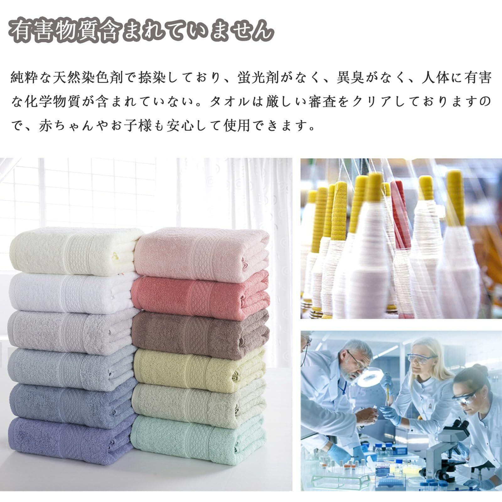 【高品質・耐久性】厳選された100%上質綿の素材で、優しく柔らかい肌触り、優れた通気性、天然成分による高い抗菌・抗臭性、安全性。蛍光剤、有害な染料、発ガン性のある物質など一切含まれていません。タオルは厳しい審査をクリアしておりますので、赤ちゃんやお子様も安心して使用できます。染色堅牢度は4級に達し、色移りがなく、何回洗濯しても変形しない、超強い長持ちします。折れにくい強靭な長い糸に精製織法を採用して糸の靭性が強くて使用寿命は普通のタオルの4倍以上です。