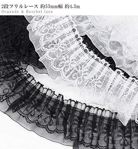 MYmama 2段 フリルレース 約55mm幅 約4.5m オーガンジー ラッセルレース (ブラック)