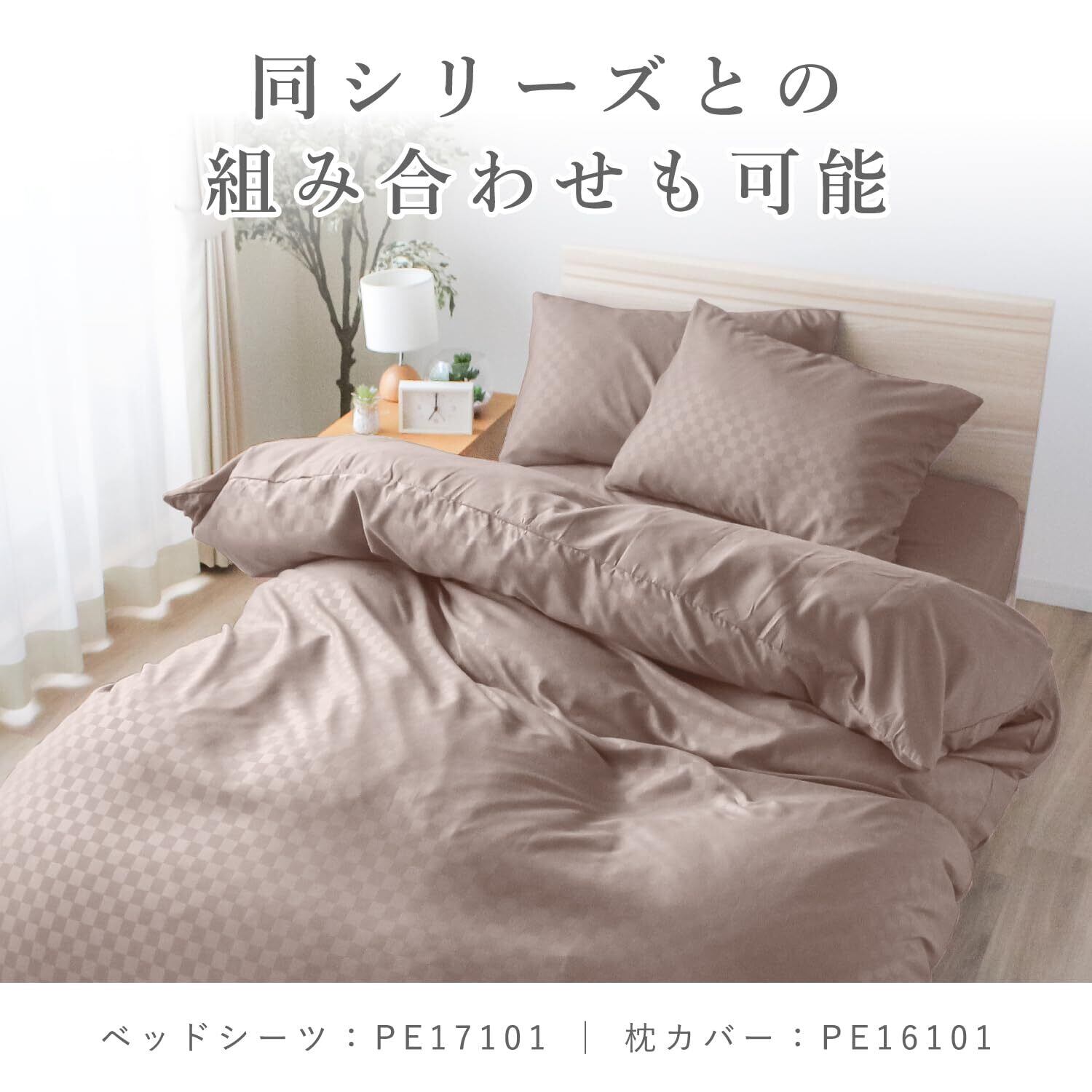 単色だが光の加減で市松柄が現れるモダンテイストの布団カバー。和洋室どちらの部屋にも合わせやすいカラーです。
