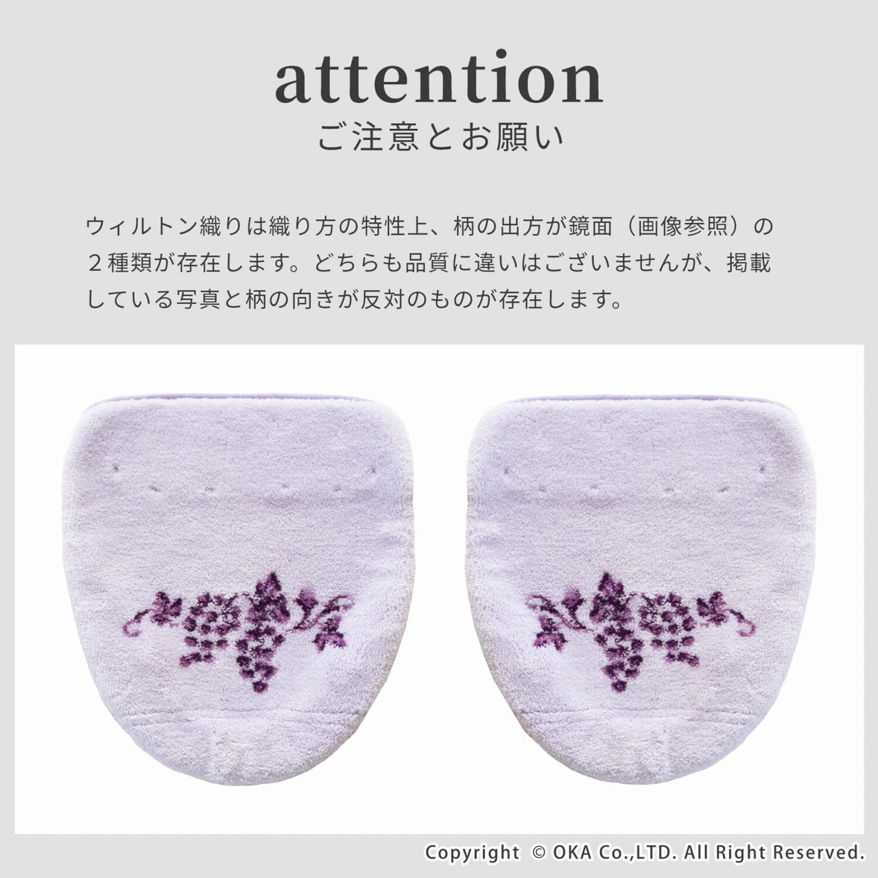 繊細な柄が表現できるウィルトン織りマットならではのエレガントな「乾度良好ラクス トイレシリーズ」のトイレフタカバー。お洗濯でき、抗菌防臭加工付きなのでいつでも清潔に保つことができます。ほとんどの機種に適合できるよう吸着で貼りつけるタイプとなっています。糸の目をぎゅっと詰めて織り上げ、触り心地、重さなどに高級感があり、葡萄のデザインがトイレの空間をエレガントに彩ってくれます。