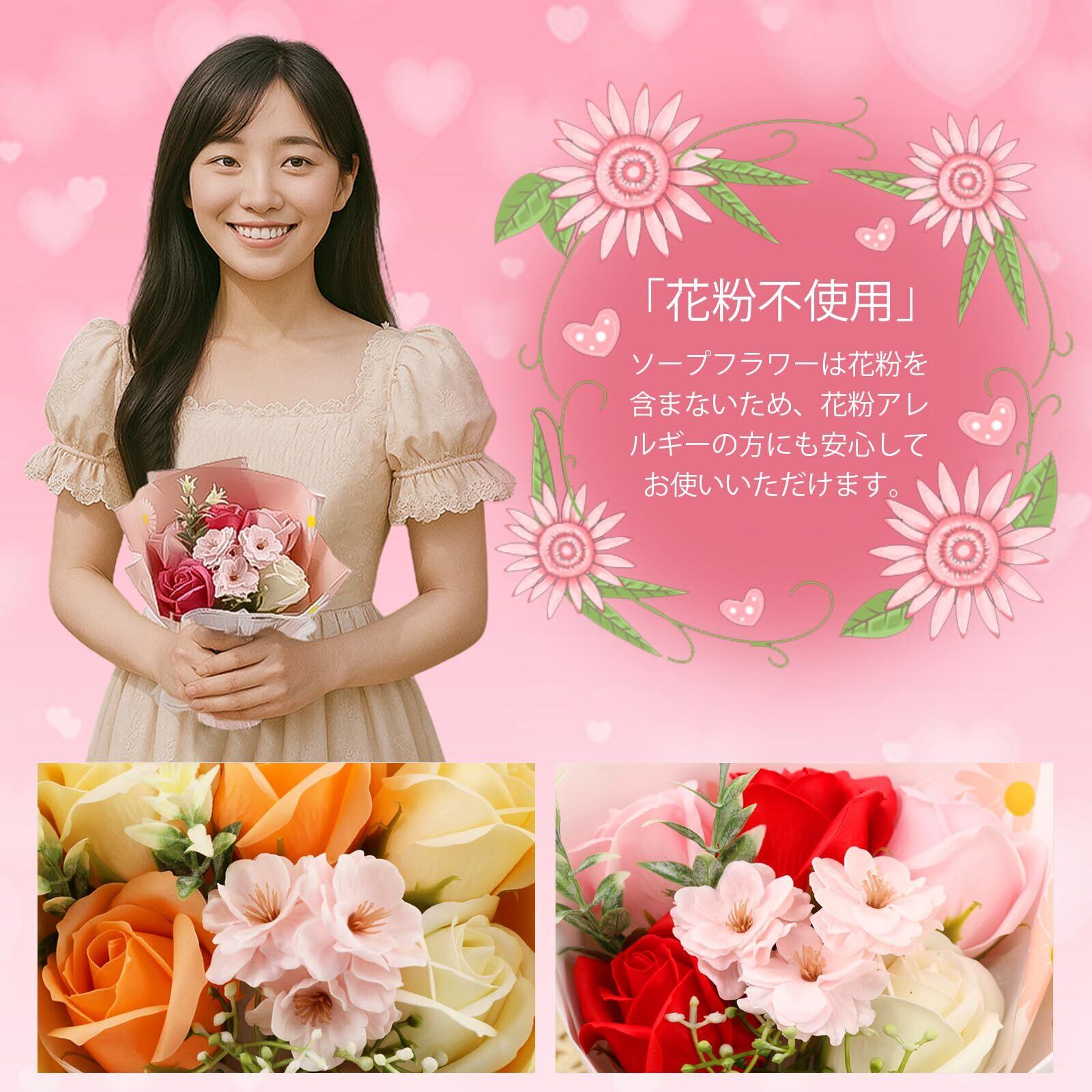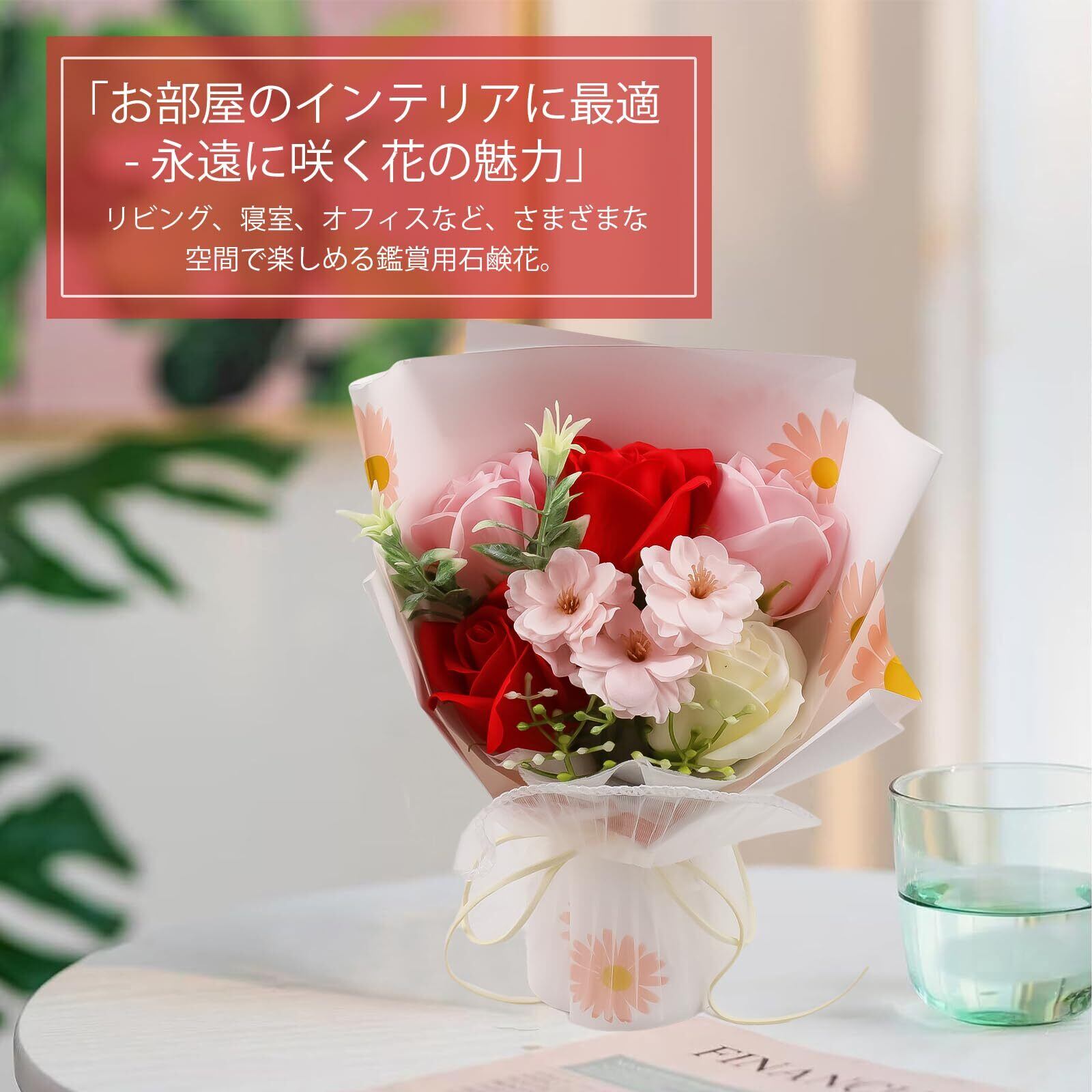 和宅優品 ソープフラワー 花束 父の日や誕生日の贈り物に 枯れない花 ギフトボックス&カード付き 退職祝いや卒業記念にも最適 (レッド系桜バラ)