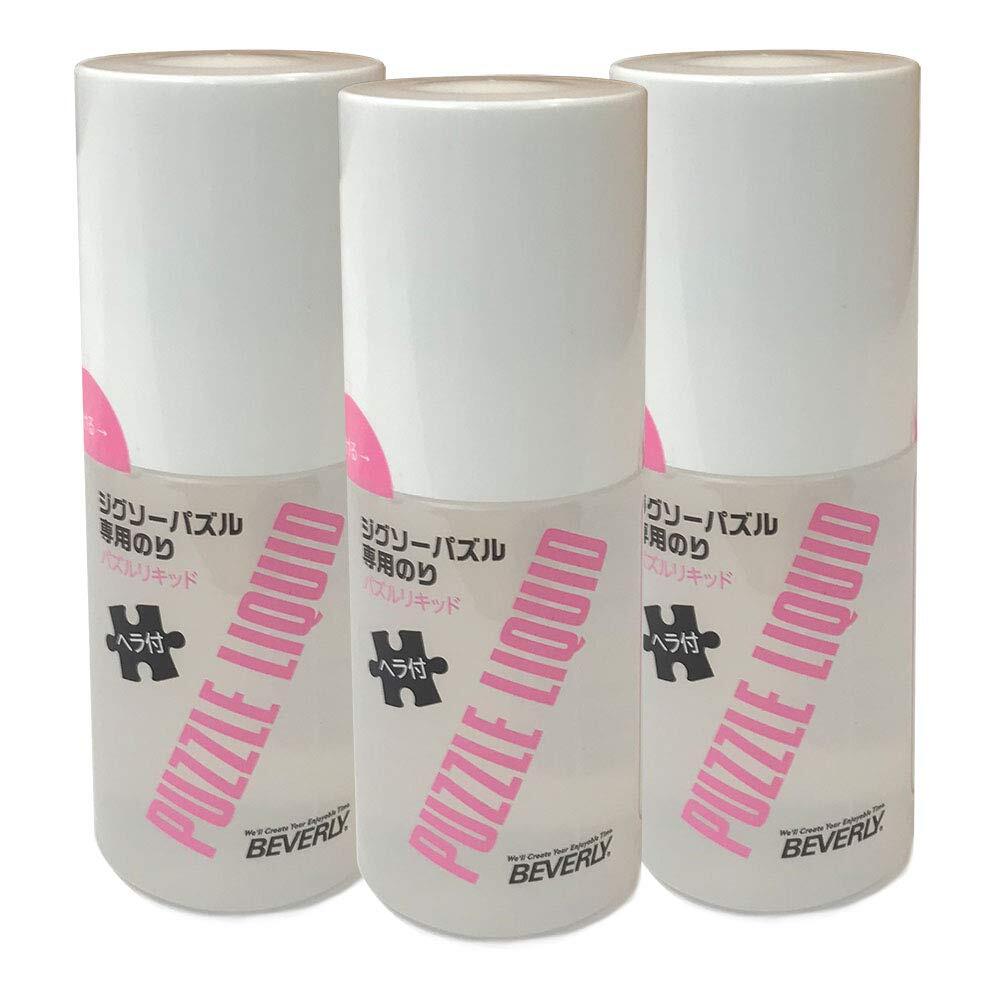 ジグソーパズル専用のりの3本セットです。 組みあがったパズルの表面にのりをおとし、キャップの内側にセットされている専用ヘラでまんべんなくのばしてください。