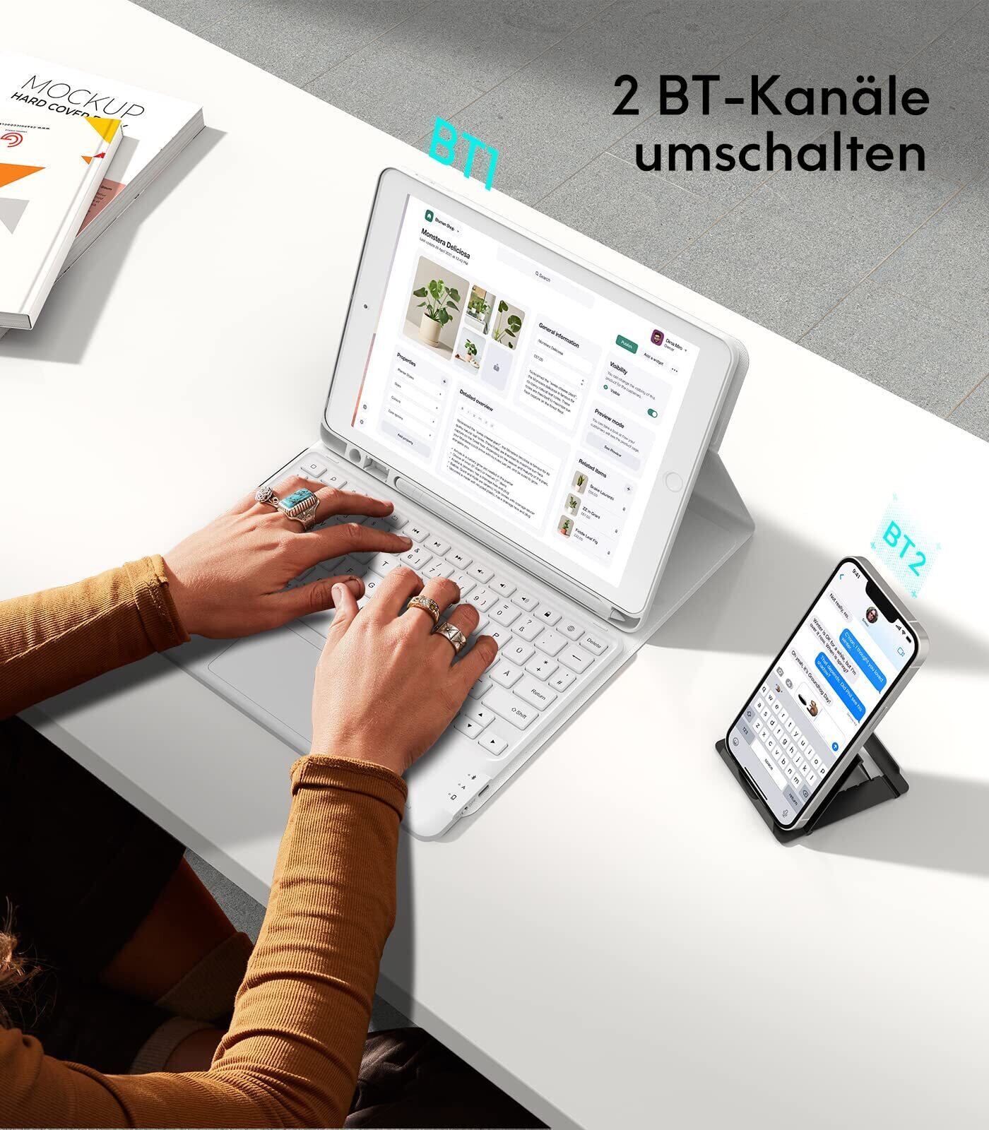 Earto iPad 9世代 8世代 7世代 キーボードJIS基準日本語配列 iPad 10.2/10.5 bluetoothキーボード タッチパッド搭載 脱着式 多角度調整 [ペンシルホルダー付き] type-c充電式 マグネット アイパッド10.2インチキーボード[ iPad 10.2/iPad Air3/Pro 10.5(2017)兼用]ホワイト