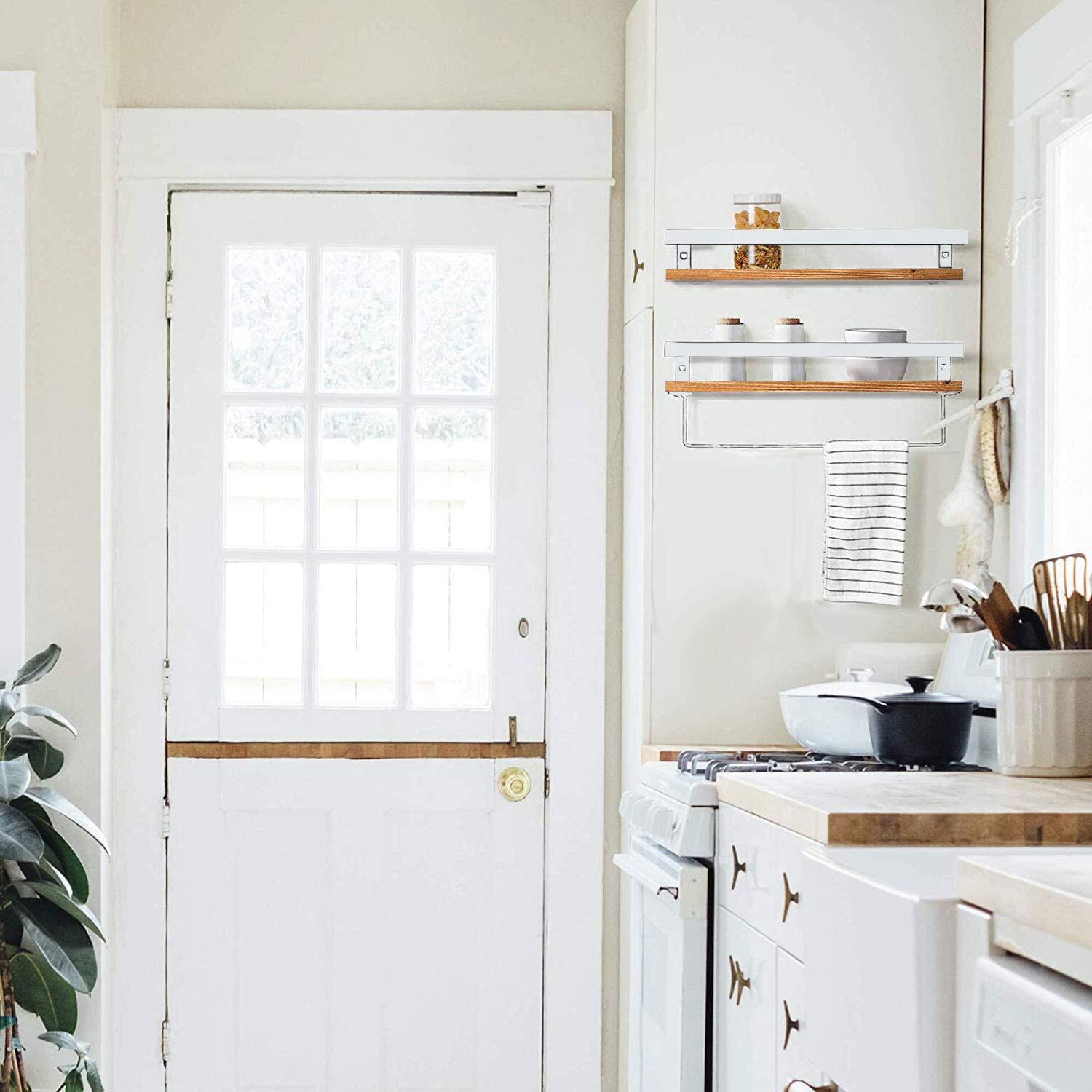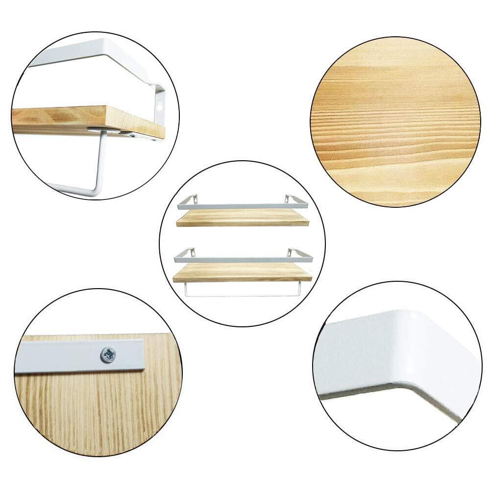 YIJUMI ウォールシェルフ 壁掛け 天然木製 ガード付き トキッチン トレイ壁棚 収納 ラック アイアン 飾り棚 2個セット