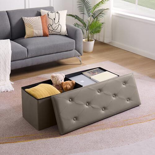 VECELO 収納スツール オットマン 収納ベンチ 収納ボックス 幅110*奥行き38*高さ38CM 耐荷重50kg 折り畳み可能 踏み台 足置き リビング/玄関/寝室適用 おもちゃ箱 洋服収納 化粧品収納ボックス ブラウン | yankees