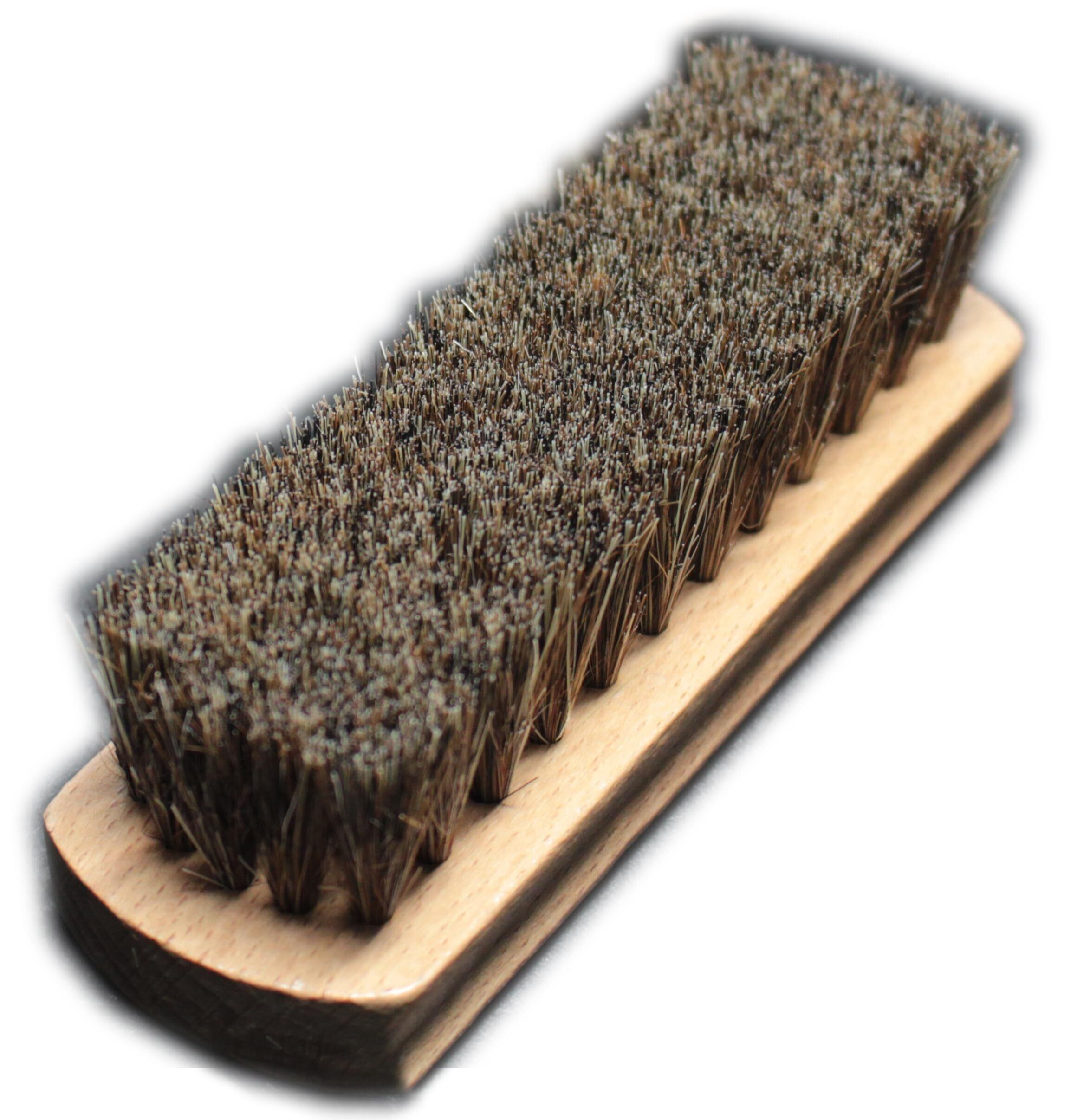 布 や スポンジ でクリームを添付した後の仕上げに 靴クリームを塗った後、 ブラッシングすると 靴になじみ、伸ばすことにより光沢もでます。馬毛は革靴に馴染みしっかりと靴に光沢感を与えます。