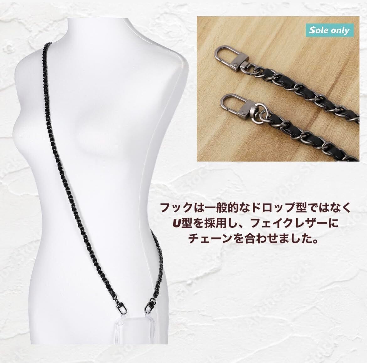 あまり主張しすぎない細めのチェーンで、ホルダー付きスマホケース・ショルダーバックに取り付け、ストラップを交換して楽しめます