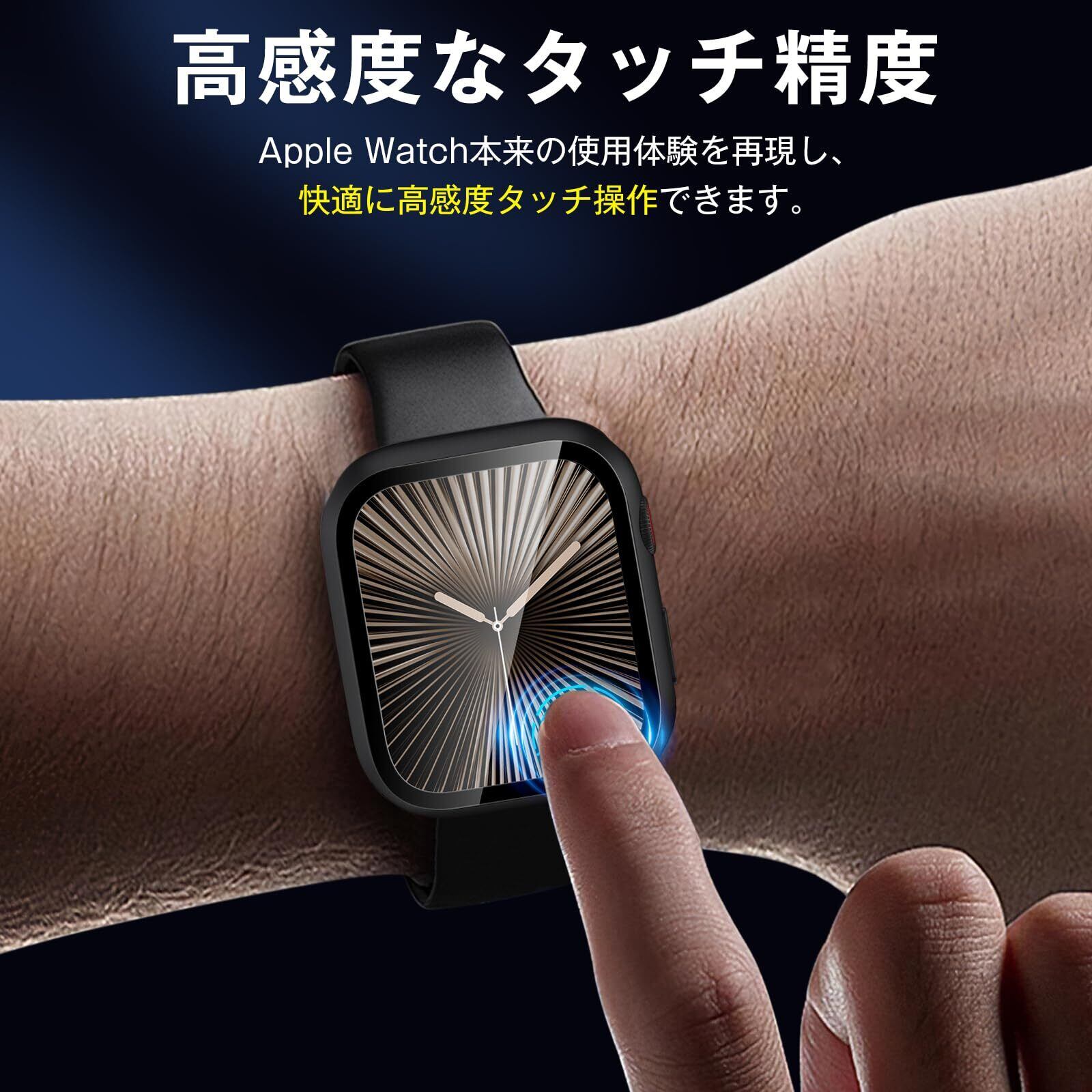 【全面保護·9Hの硬度】強化ガラスフィルムとPCフレームまた防水リングの三重構造仕組みを採用し、最高レベルの9H硬度、 盛り上がったエッジガードが、スクリーンを硬い面にぶつけないように保護します、Apple Watch保護機能を更にアップ!