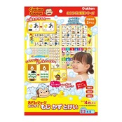 Gakkenおふろでお勉強シリーズ「おさるのジョージ おふろでもじ かず とけい」は、黒い丸にお湯をつけると文字やイラストが現れる感温インク付き!もじ・かず・とけいが楽しく学べます。おふろの壁に水をつけてシートを貼ったり、湯船に浮かべたりして、表を見ながら声に出して物やキャラクターの名前や数字を言ってみましょう。物の名前など、黒い丸で隠れています。お湯をつけると、名前が出てきます。しりとりをしたり数をかぞえたりして親子で楽しくコミュニケーションをとりながら学べるおふろシートです。(感温インクは約32℃以上で色が消え始め、約25℃以下で黒い色が着色します)