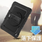 【360°回転スタンド&ペンホルダー】バックカバーの中心に360度回転できる回転盤があり、そこには折り畳み可能なスタンドが組み込まれています。スタンドは回転盤に連動して360°旋転し、異なる立つ角度を実現できます。文字を入力する場合やビデオ通話を行う際には縦置きに、動画を視聴する時は横置きに、お好みの位置に自由に回転させることができます。また、調整可能なハンドストラップが付き、片手でiPadを操作でき、落下や滑りなどのことを防ぐことができます。さらに、ケースにはペンホルダーも搭載されています。