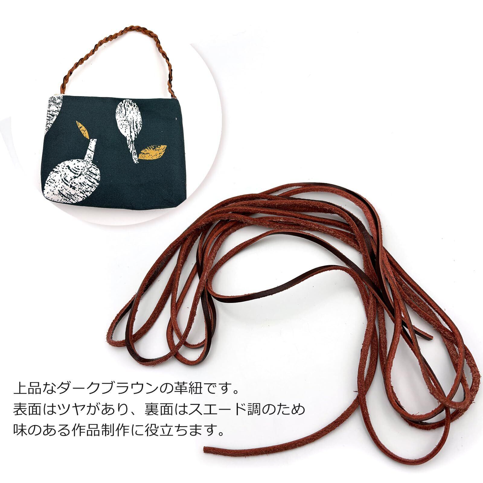 このダークブラウンの革紐は、高級感ある落ち着いた仕上がりで、作品に上品さをプラスしてくれます。ストラップの編み込みやキーホルダー製作はもちろん、レザーアイテムの装飾や修理にもぴったりなアイテムです。