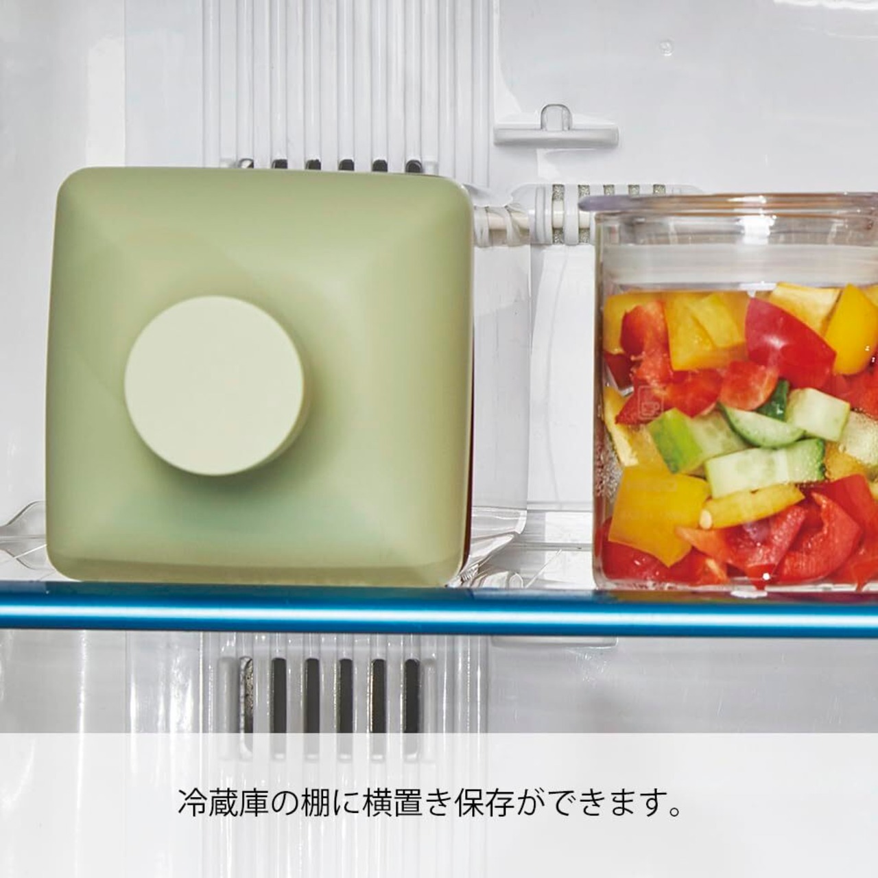 角型の水出し茶用ボトルなので横置き保存OK。注ぎ口にフィルターが付いているのでそのまま注げます。