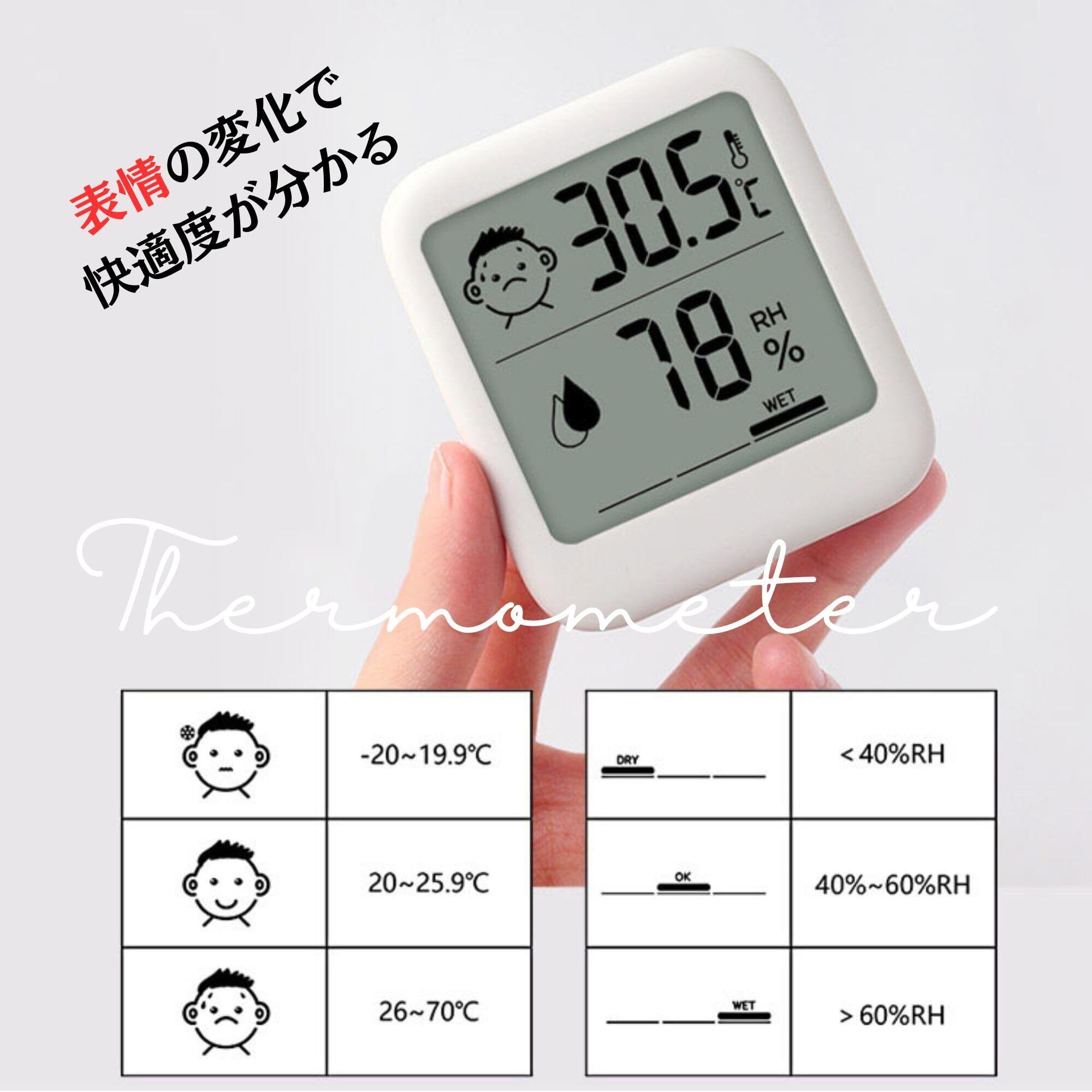 HATUSOKU デジタル温湿度計 快適度顔表示付 温度計 湿度計 スタンド マグネット 吊り下げ 手のひらサイズ (シンプル・時計無し) ホワイト