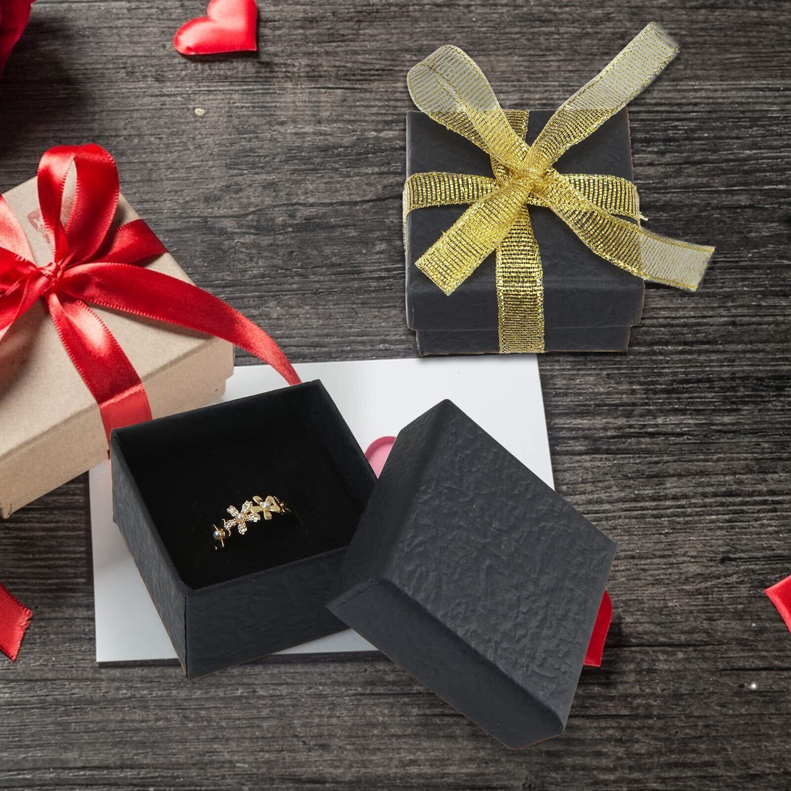 RILIHII 【50個セット】 ギフトボックス 指輪ケース ギフトボックス ッピング ボックス 正方形 5×5×3cm リング アクセサリー ジュエリー 収納 ラッピング 箱 無地 クラフト紙 スポンジ付き 黒 指輪 ギフト ボックス | yankees