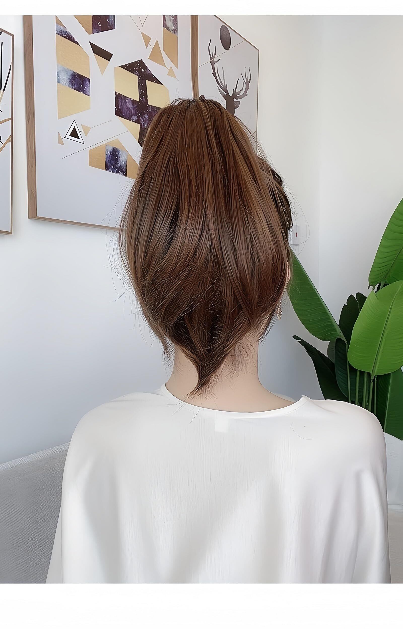 MISS FANCY ポニーテールウィッグ カール ヘアウィッグ 簡単クリップ式 女性 かつら エクステ ポイントウィッグ おしゃれ ショートポニーテール ウィッグ 4色 自然 ショートストレートヘア 日常着用ウィッグ (ブラウンブラック) | yankees