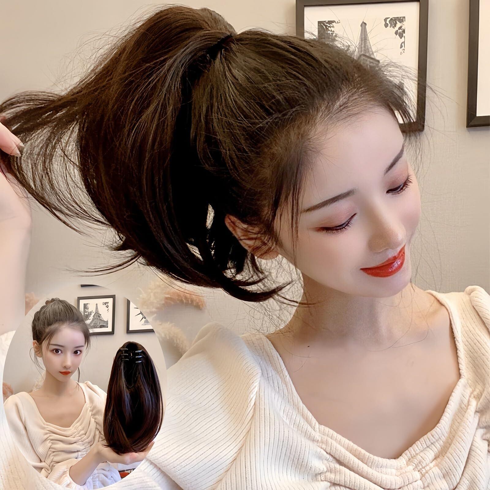 【特徴】:短い髪でも簡単にポニーテールにできます。クリップ式のデザインを採用しており、装着や取り外しが簡単で、クリップが小さく簡単に隠すことができ。4種類の髪色はすべて日常的なコーディネートに特に適してい。