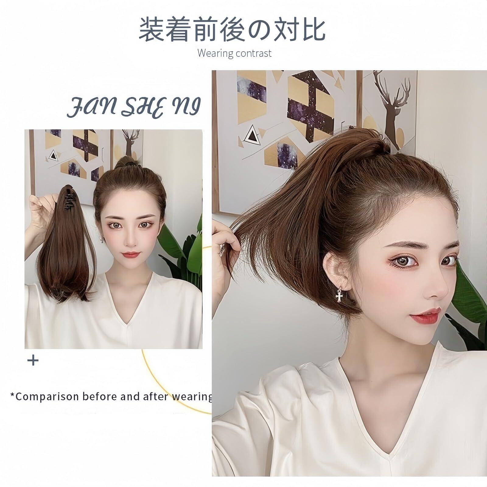 クリップ式のデザインを採用しており、短い髪でも簡単にポニーテールにできます。ナチュラルでふんわり、真髪との類似度が高くて、4種類の髪色はすべて日常的なコーディネートに特に適してい。