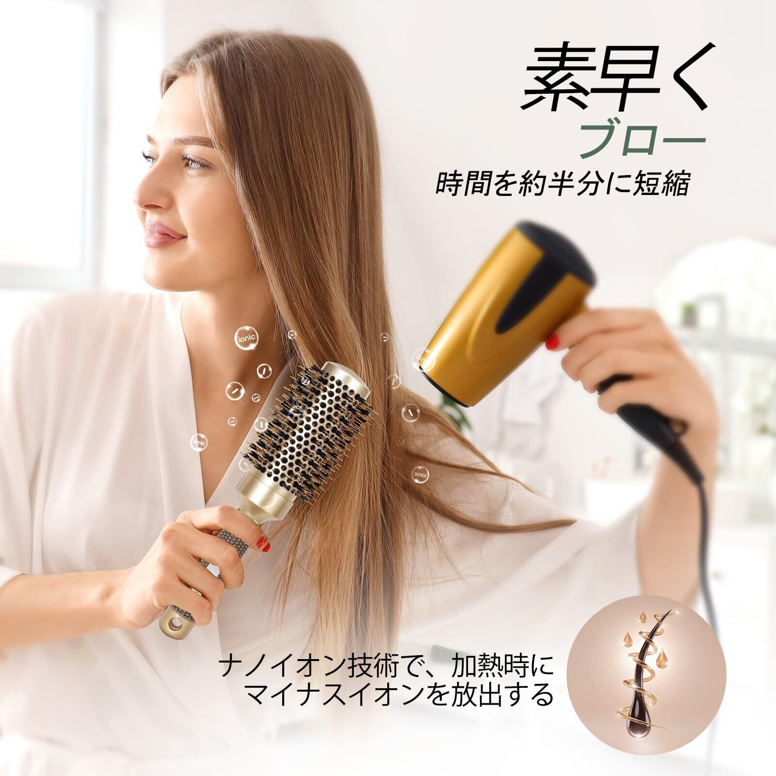 【ナノセラミックイオン技術】ラウンドブラシを使うと、髪に限りない輝きが生まれます。髪を綺麗に見せ、髪質改善、もろさや枝毛などトラブルが減ります!くせ毛を改善し、ツヤツヤな髪へ。キューティクルを強化し、根元から毛先まで艶々の仕上がりになります。セミロングをゆるやかなウエーブとカールを作ります。ミディアムヘアをストレート、ロールブラシでボリュームアップさせます。