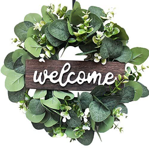 Formemory 造花 ユーカリ リース ドライフラワー 【welcome】花輪 クリスマスリース ガーランド 玄関飾り 壁掛け 庭園飾り デコレーション クラフト クリスマス花輪 玄関 庭園 ドア ぶら下げ飾り (ウエルカム)