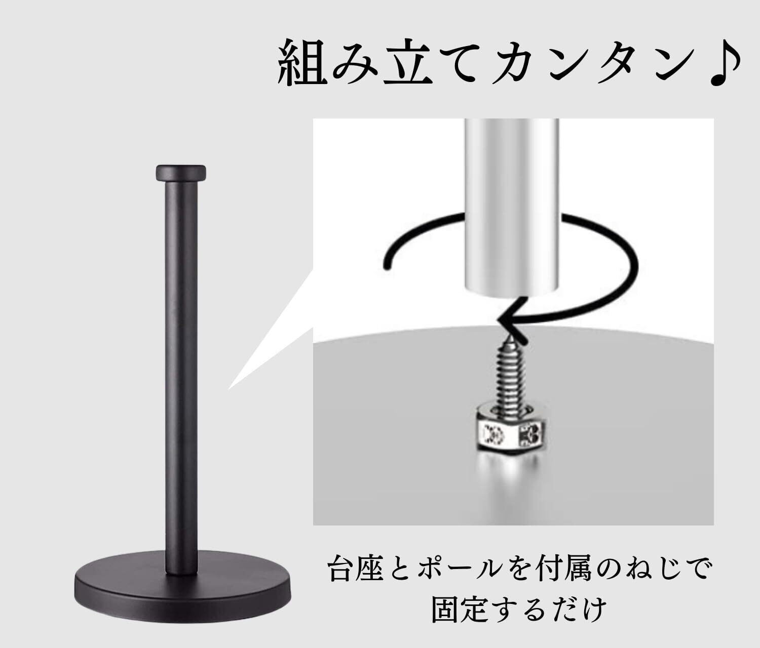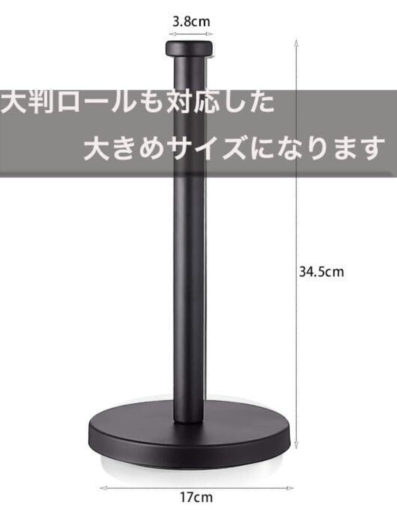 Thujopsis キッチンペーパーホルダー 倒れない 片手で切れる 吸盤付き ステンレス ペーパースタンド シンプル 大判ロール 動かない (ブラック)