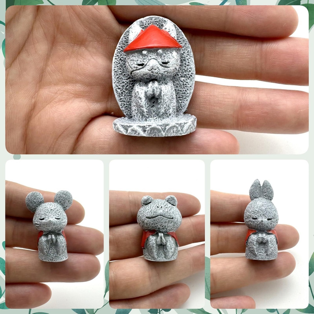ReemeHi 動物お地蔵さんセット癒し可愛い小型置物祈りお地蔵様おじぞうさま守り神みかげ石 幸せ願い縁の良いおきもお かわいい御影石 神仏像 (蛙)