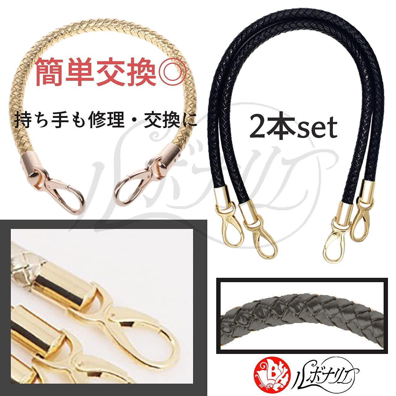持ち手を高級感漂うブラックに!修理・交換用バッグハンドル2本セットです。