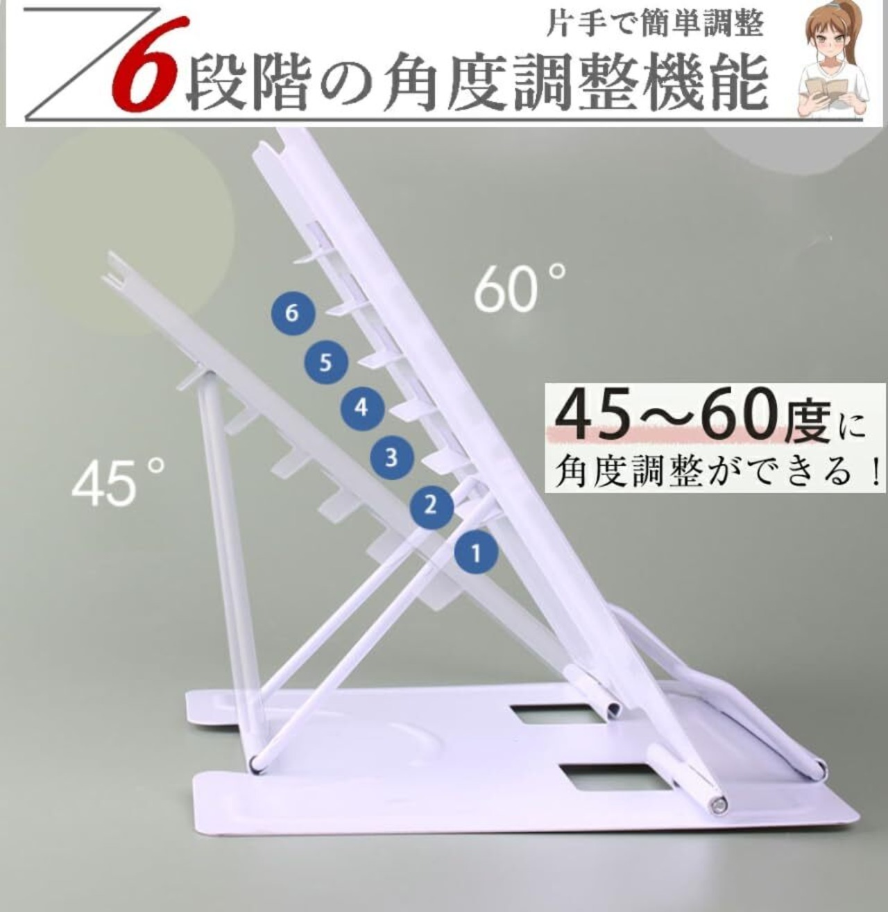 ブックスタンド 書見台 おしゃれ 卓上 読書台 ブックレスト 傾斜台 折りたたみ 角度調整 読書用 譜面台 本スタンド (ホワイト)