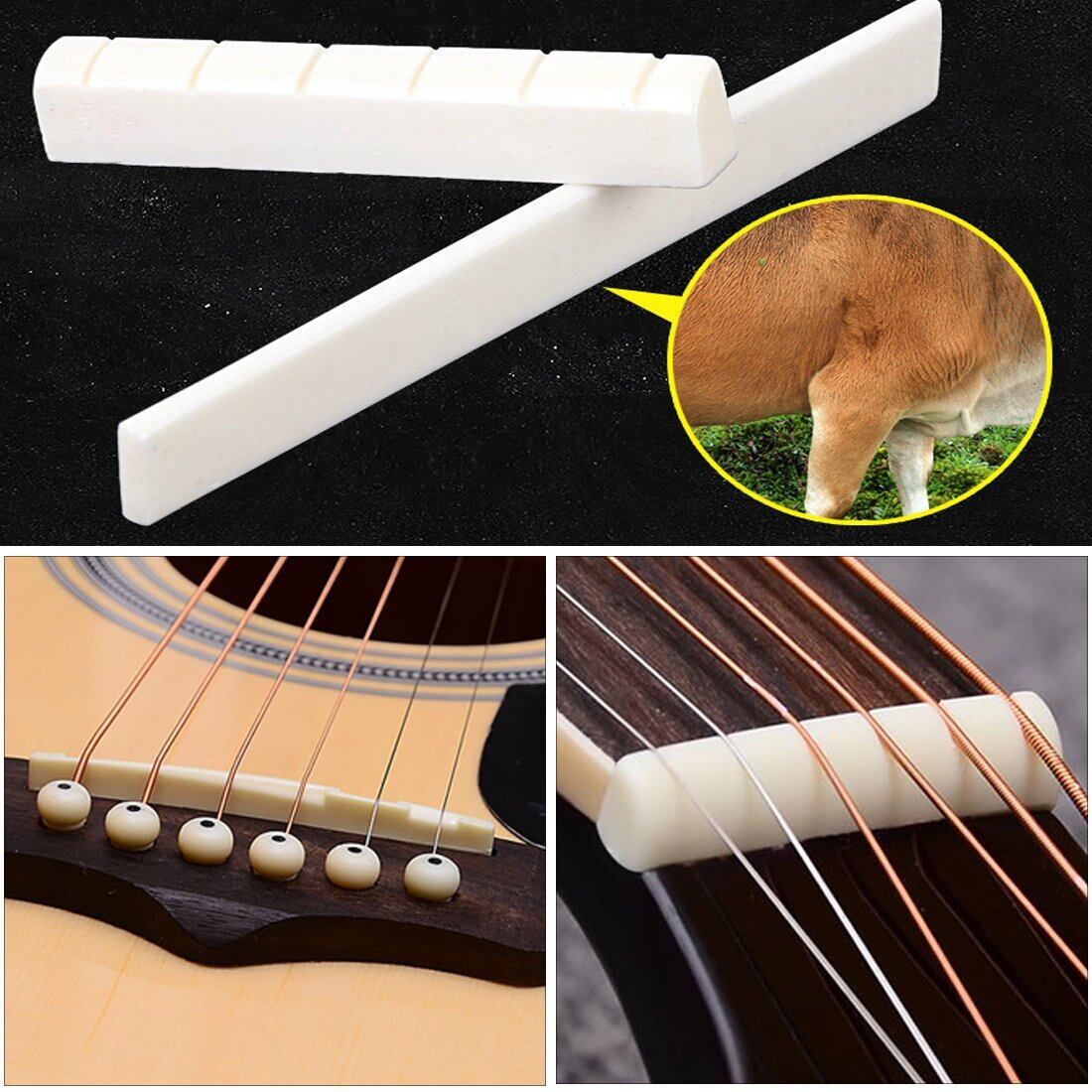 Luvay ギター ブリッジ ナット&サドル 置換部品 真牛骨製 アコースティックギター用 2セット4pcs 良く鳴る