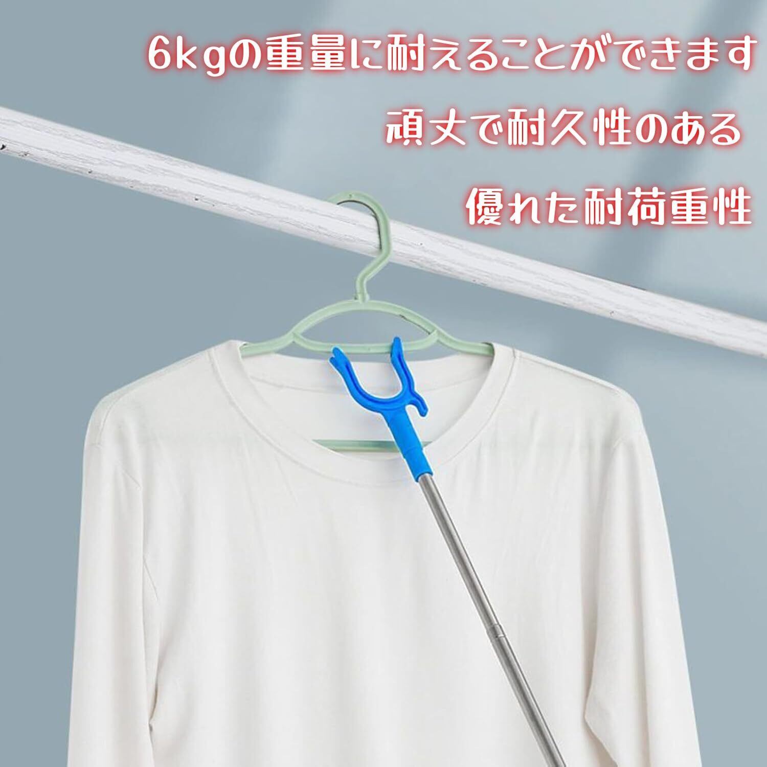 竿上げ棒 物干し竿 伸縮式 洗濯 竿あげ 調節可能 軽量 洗濯 竿上げ 延長クローゼットフックポール上の棚 天井 家庭用 (ホワイト)