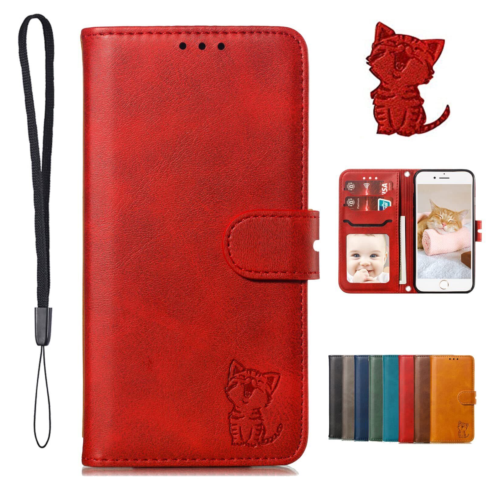 【ユニークなデザイン】シンプルながらも機能性も備わったデザインです。型押しの可愛い猫のモチーフと上品なレザーの組み合わせるケースであり、それに上下に二つのストラップ穴もあり、お好きなタッセルとストラップとかお付けられます、簡単こそクラッシクの上品を引き出せる、手作りの高級感ある色合いでちょっぴり大人なスマホケース。学生にも相応できるし、ワンポイントは笑顔猫であり、この手帳型ケースをギフトとしても最適です。