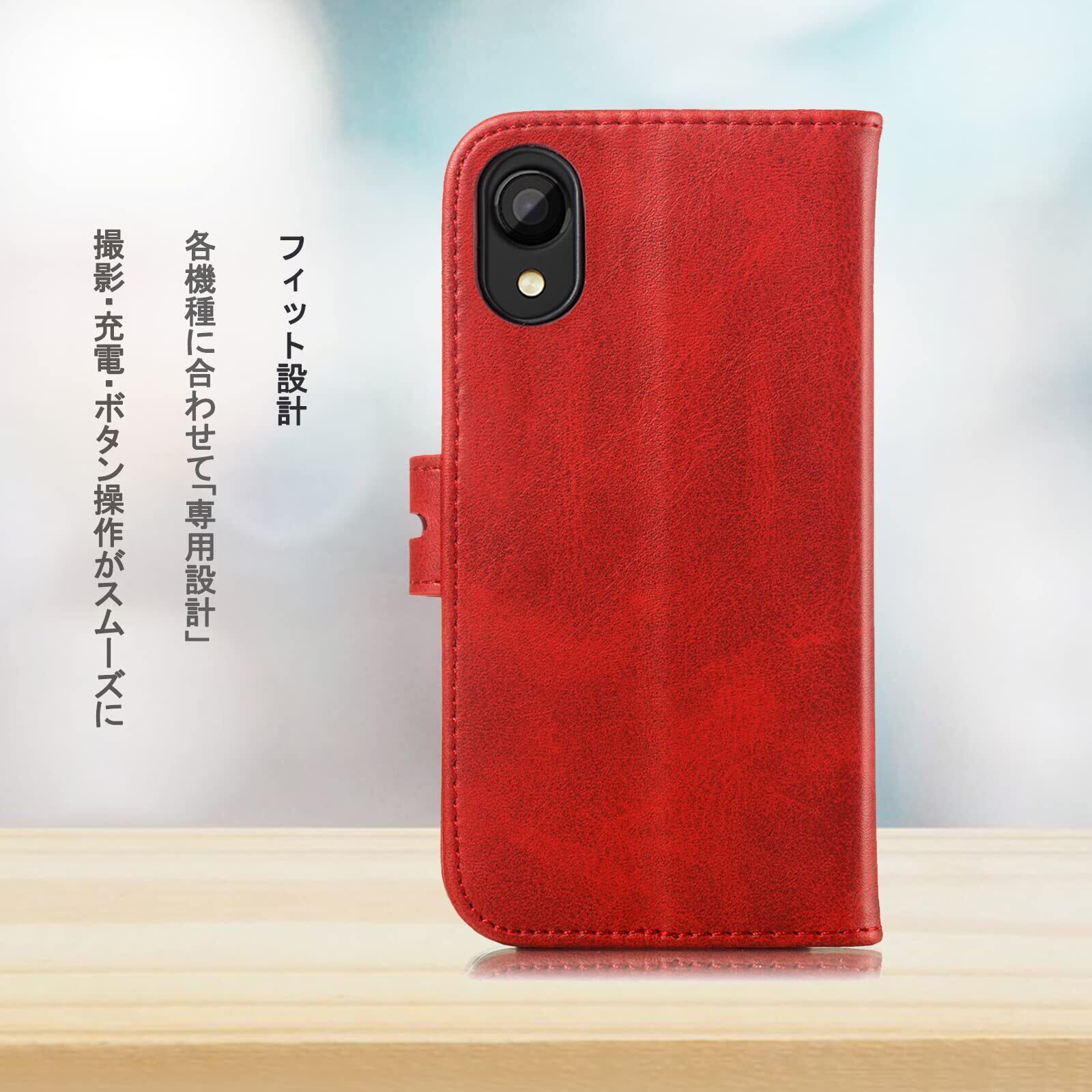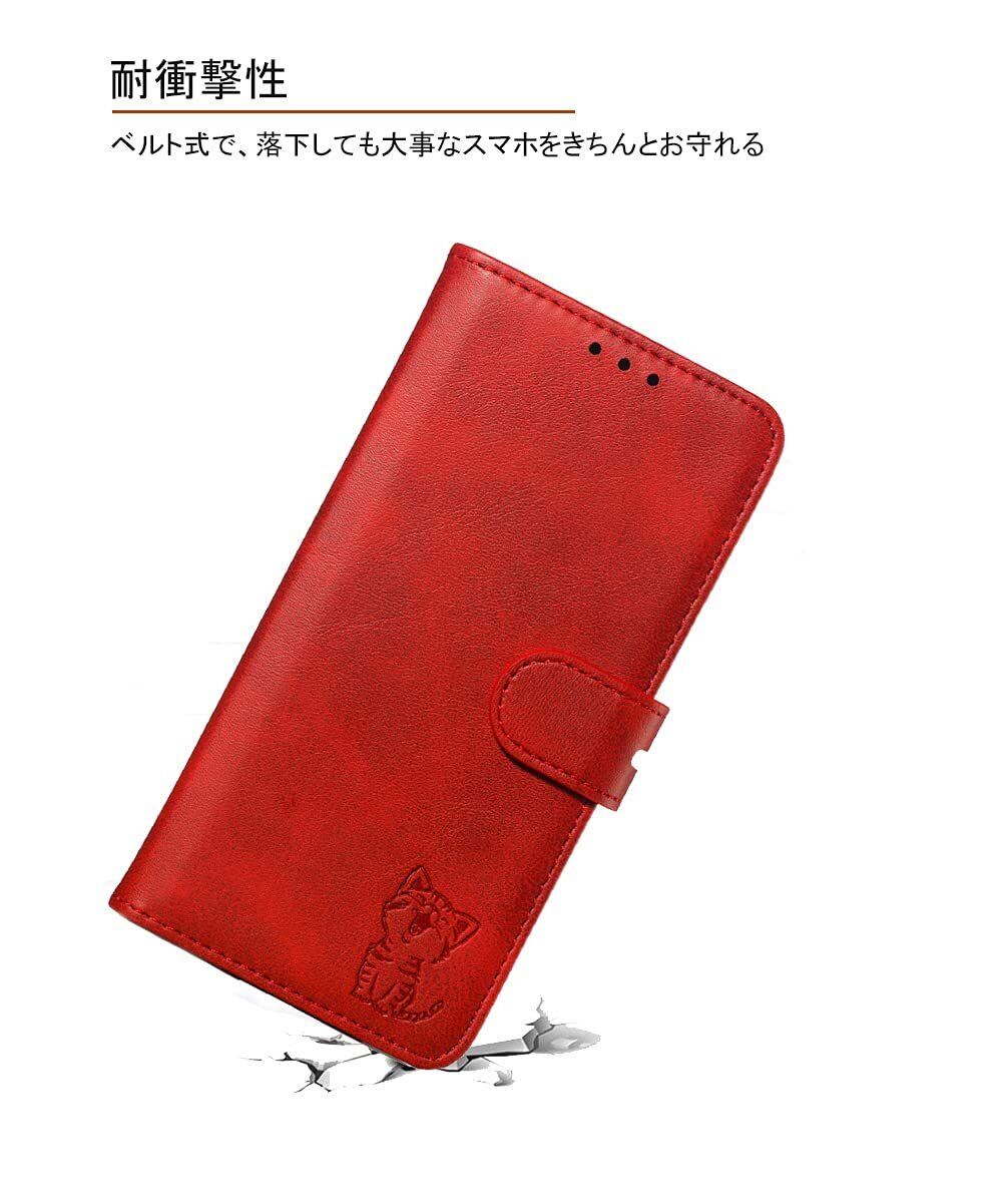 Galaxy A23 5G ケース 手帳型 SC-56C ケース SCG18ケース docomo サムスン ギャラクシー A23ケース sc56cケース sc-56c携帯ケース scg18 case 笑顔猫 ストラップ付き ベルトマグネット スタンド機能 (Galaxy A23 5G SC-56C/SCG18対応) レッド