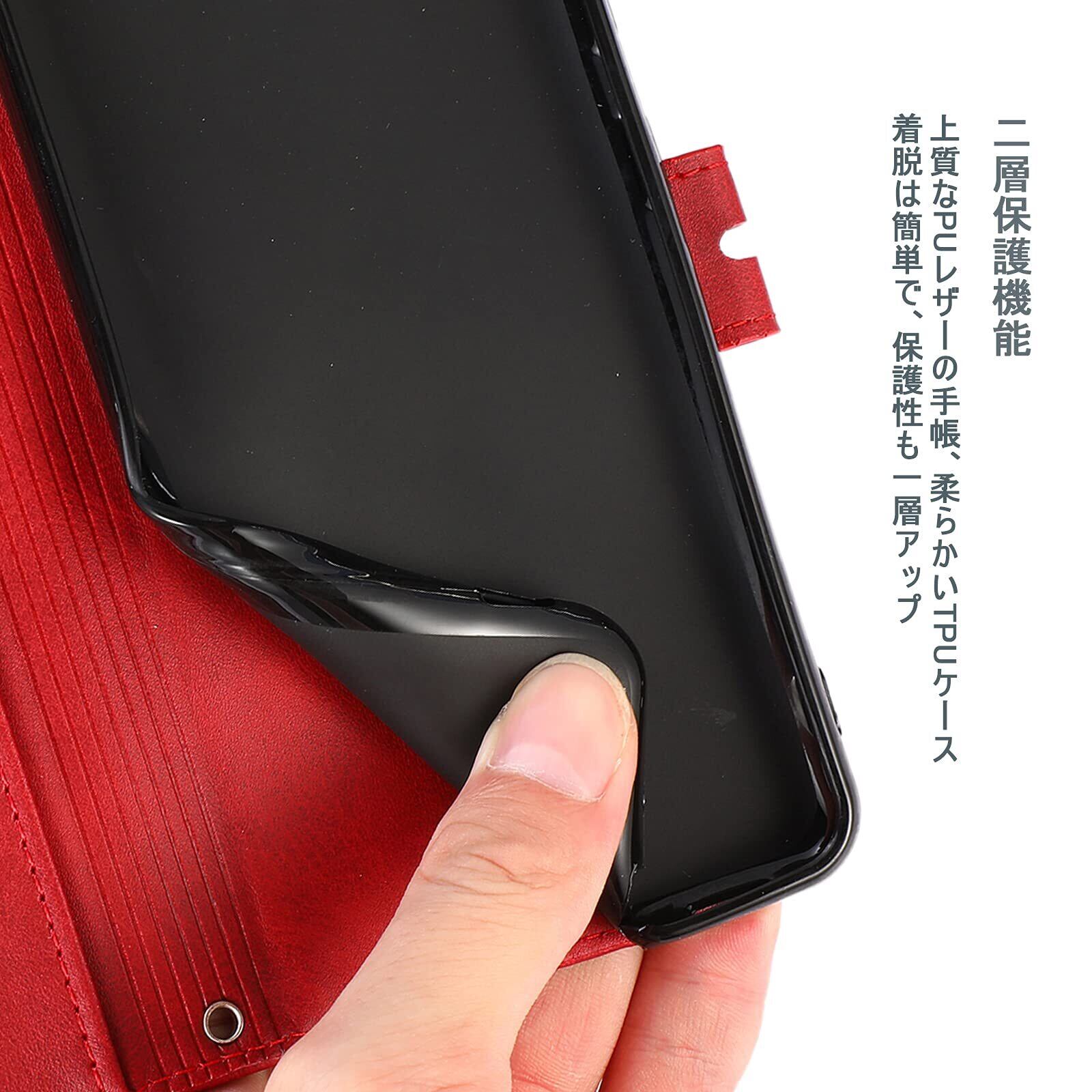 【功能 &機能性 4in1】①横置きスタンド機能:動画視聴でも手に持つ必要がなく、超楽々動画視聴が可能です;②財布型:ケースの裏側に3つのカードポケットとお札入れのフリーポケット一つあり、ショップでのポイントカード、交通機関でのスムーズな移動をサポートでき、 SUICA / PASMO / ポイントカード / メモ 等収納でき、ちょっととしたお出かけてもこれで十分です;③ベルトマグネット内蔵 、カバンの中で、自動的に開けないので、きちんとカードを保護し、片手でも簡単操作できる;④ストラップを付ける穴が3つあり、上下に各一つ、それにインナーケースの右下にも一つ穴あり、お好きなストラップとタッセルとかを使用でき、生活にもっと便利になり、または各種ボタンの使用、カメラ撮影、スピーカーホール等、すべての機能もそのまま立て掛けて稼働します。
