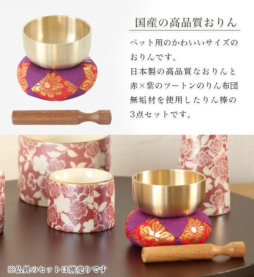 ペット用おりん 3点セット ミニお得リン 「かれん」 モダン 仏壇 りん 1.8寸 国産 日本製 供養 ペット 仏具