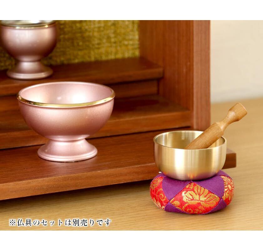 おりんは国産で、りん棒は無垢材を使用しております。(無垢材のため色や木目などが一つ一つ違います。予めご了承ください。)