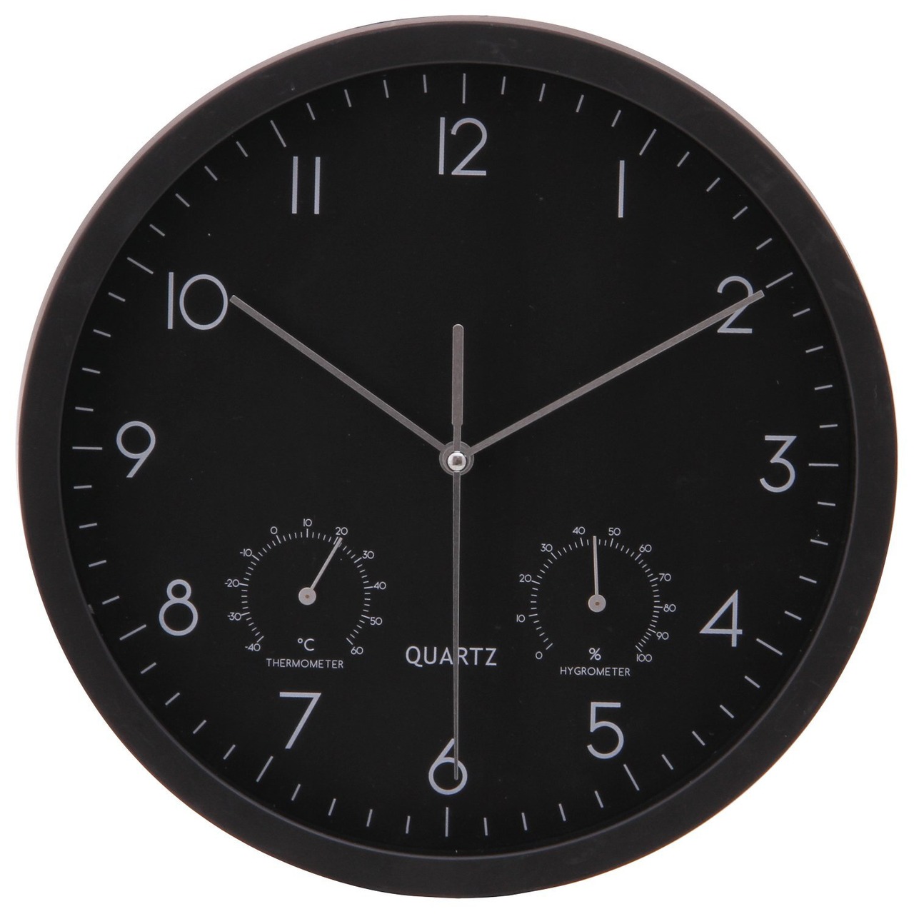 不二貿易 掛け時計 直径25.4cm ブラック 温度・湿度計付き スイープ 連続秒針 静音 ベゼル 26333