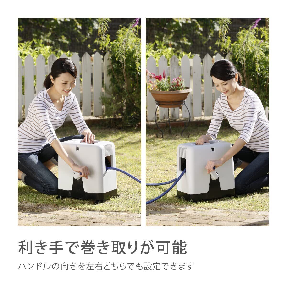 日差しからホースを守る着脱可能なカバー付きボックスタイプの散水ホースリール。