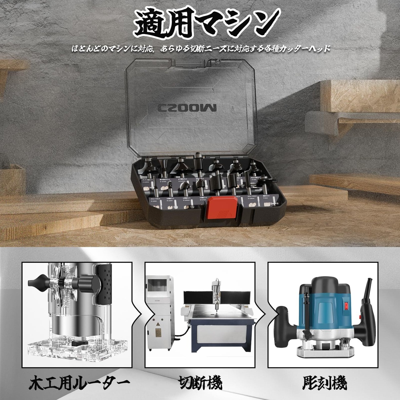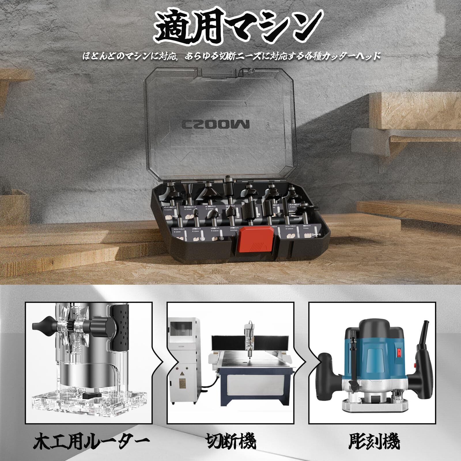 CSOOM 15本セット 超硬ルーターセット 木工トリマービットセット、超硬 ルーターセット木材切断用木工切削工具 戸板彫刻や装飾加工に最適!木工フライスカッター 彫刻 切削 木工用 収納ケース、スパナ付き | yankees