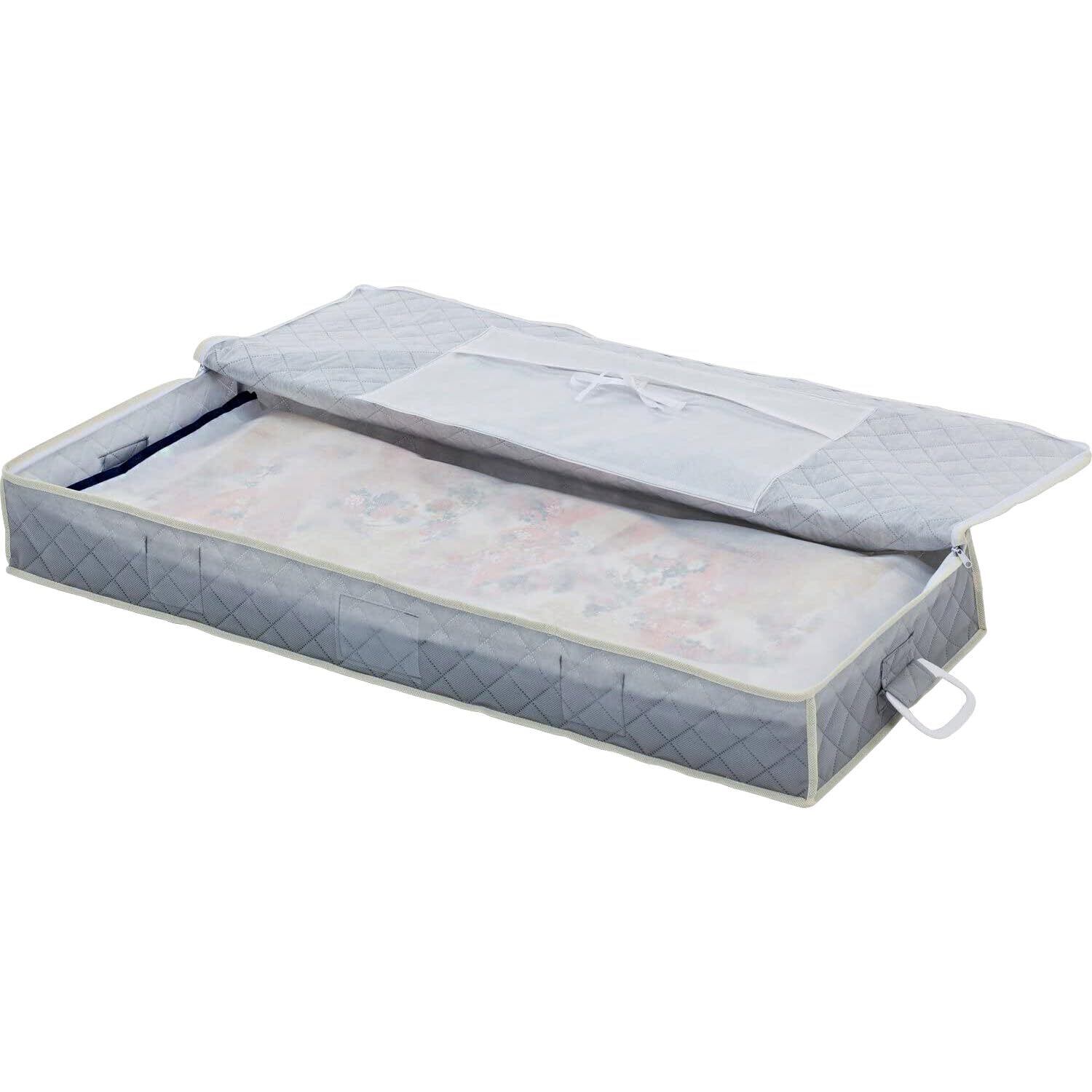 【商品仕様】:サイズ/約幅96×奥行40×高さ13cm、カラー/グレー、内容/1個、収納目安/たとう紙に入った着物(浴衣)なら約3~4枚・着物(浴衣)1枚と帯などの和装小物をまとめて収納も可能、材質/ポリプロピレン・ポリエステル