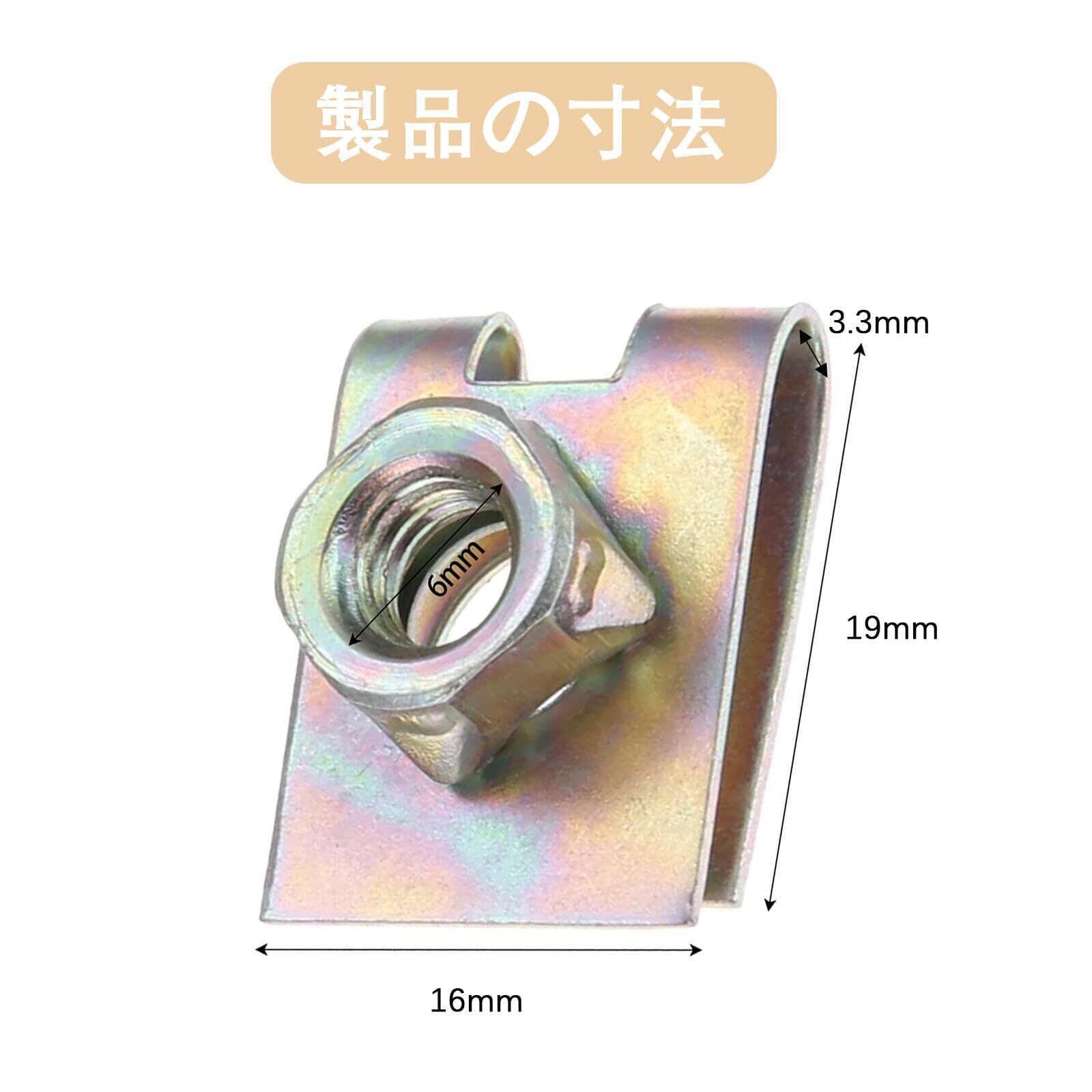 LOYELEY U型M6 クリップナット (20個) 脱落防止 固定用パーツ 汎用タイプ 6mmボルト用 ファスナークリップ