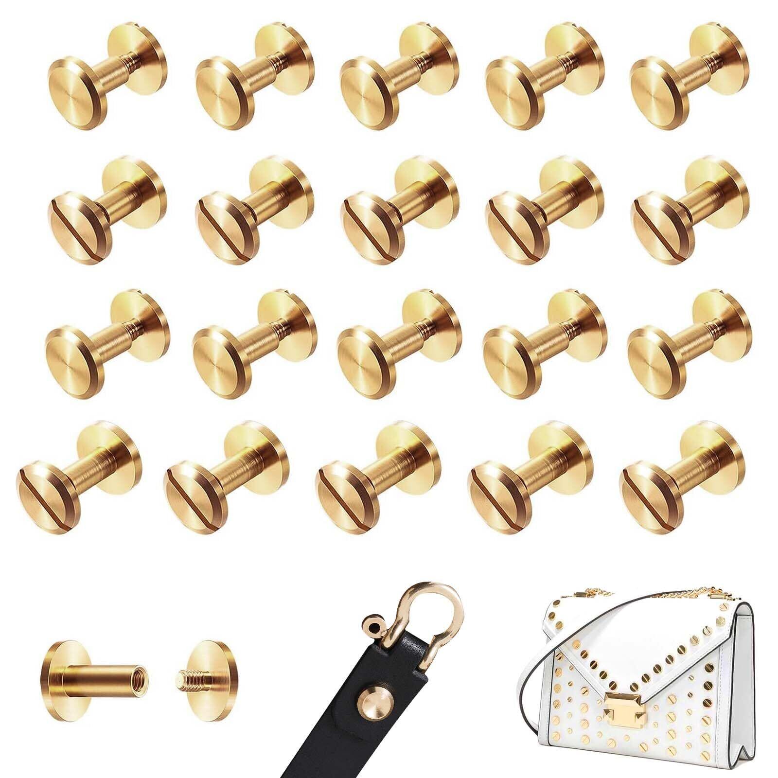 シカゴスクリュー 20個セット 組ネジ 真鍮 ネジ式カシメ 底びょう 金色 金具 パーツ バッグ ベルト レザーブレスレット ドキュメントブックアルバム製本スロットに適用(10×4×5mm)