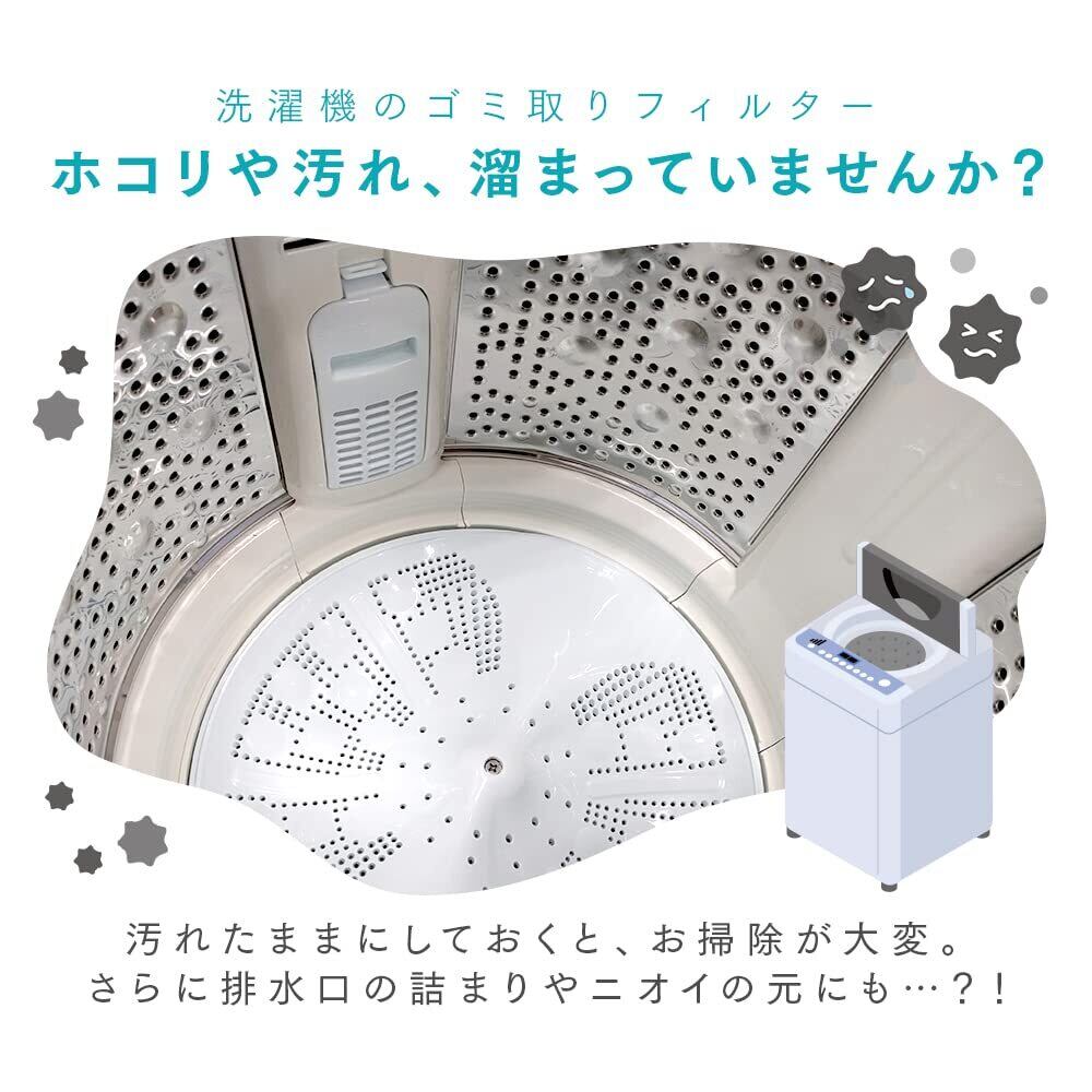 【取り付け簡単・お手入れラクラク・衛生的】面倒なフィルター掃除をラクに! 洗濯機のゴミ取りフィルターのホコリや汚れ、溜まっていませんか?汚れたままにしておくと、お掃除が大変。さらに排水口の詰まりやニオイの元にも。