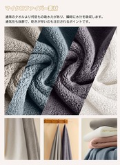 【優れた吸水性と速乾性】綿素材より優れた吸水性と速乾性。 マイクロファイバー素材の表面には無数の隙間があり、その隙間に大量の水を素早く吸収します。 髪や肌を軽く拭くだけで水分を吸収し、ホコリがつきにくいです。 バスタオルの隙間により、隙間に溜まった水分を空気が素早く拡散させるので、乾燥が早く、無菌で衛生的な状態を保つことができます。 梅雨や湿気の多い季節でも清潔を保ちます。 乾きにくい洗濯物にも快適にお使いいただけます。 室内干しも可能です。