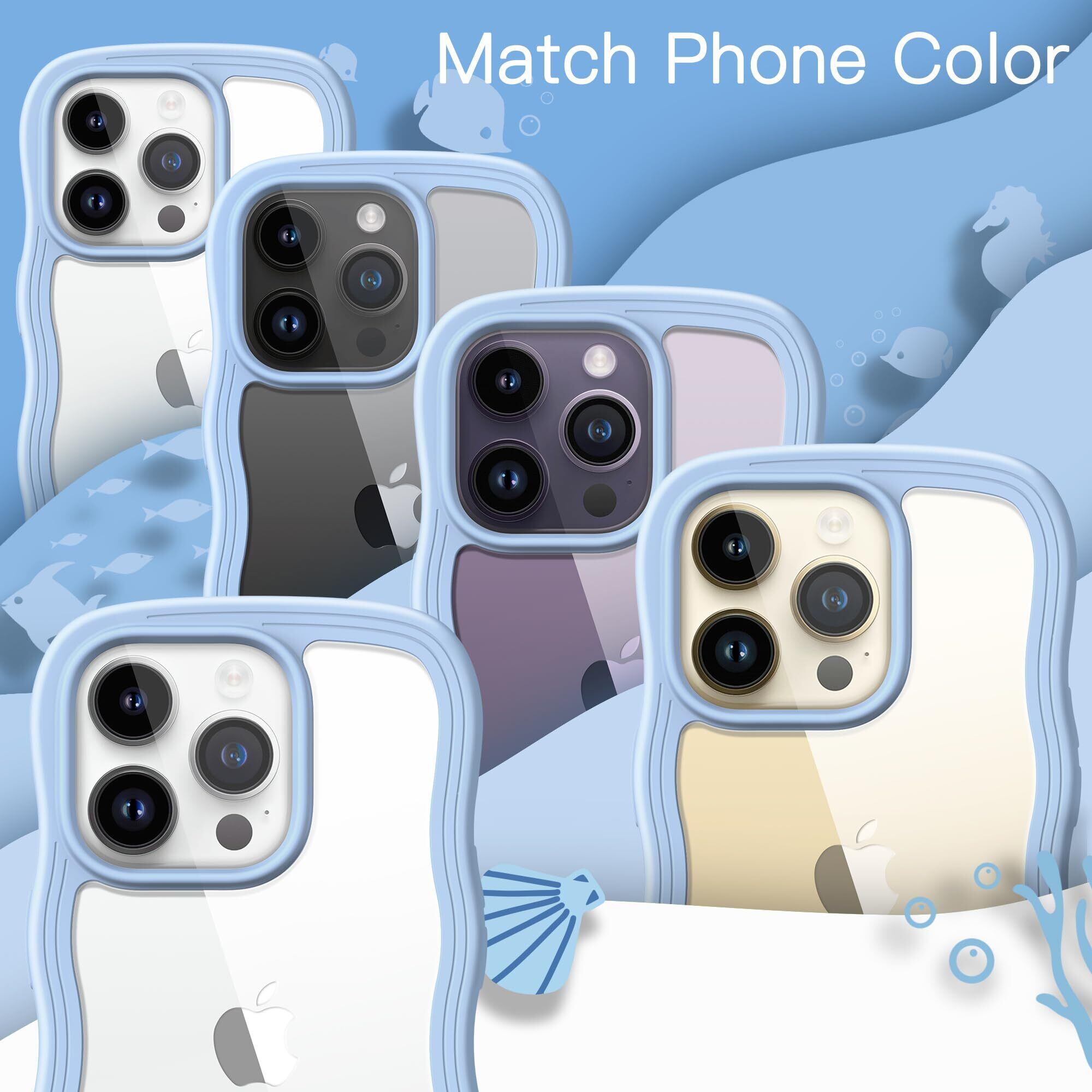 JETech iPhone 14 Pro 6.1インチ用 かわいい ケース 波状フレーム うねうね 耐衝撃 スマホカバー 女性用 女子向け クリア ハードPCバック (ブルー)