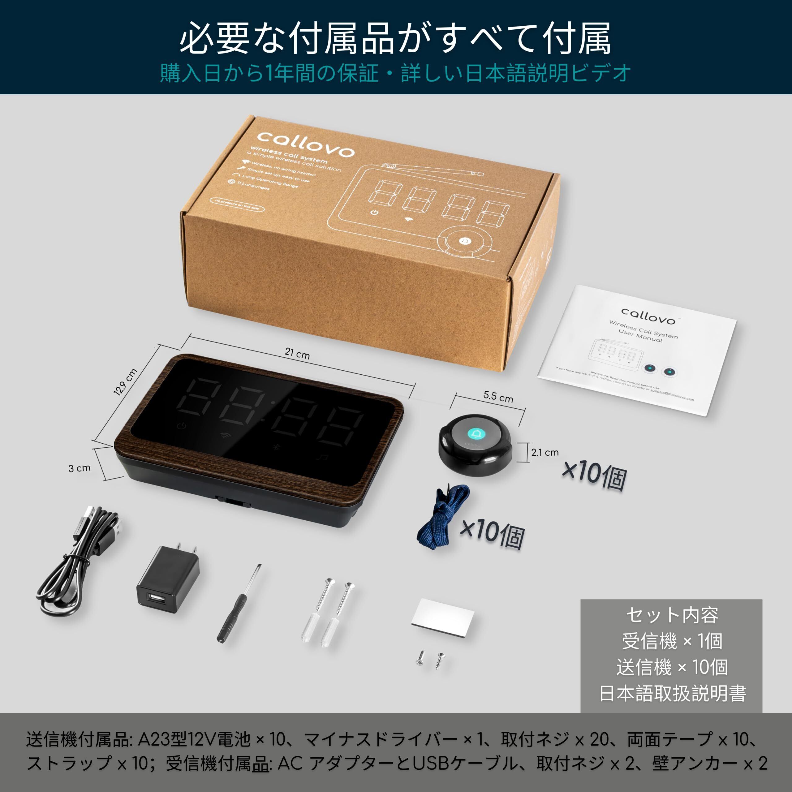 Callovo 呼び出しベル 飲食店 ワイヤレスチャイム 呼び出しベル 呼び鈴 卓上ベル 店舗用チャイム コールボタン 日本語番号呼び出し 業務用 介護用 呼鈴【受信機1台+送信ボタン10個セット】ブラック 木目柄 | yankees
