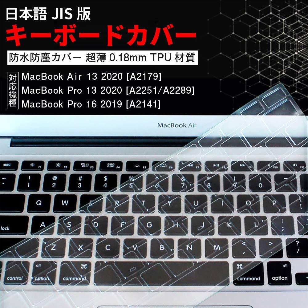 【2020年11月発売 M1チップ 搭載モデル】 Macbook Pro 13(2020) / 16(2019) キーボードカバー A2338 / A2289 / A2251 / A2141 Touch Bar 搭載モデル用 日本語JIS配列 対応 防水 防塵 超薄 高い透明感 マックブック プロ 13 / 16インチ 保護カバー prokc